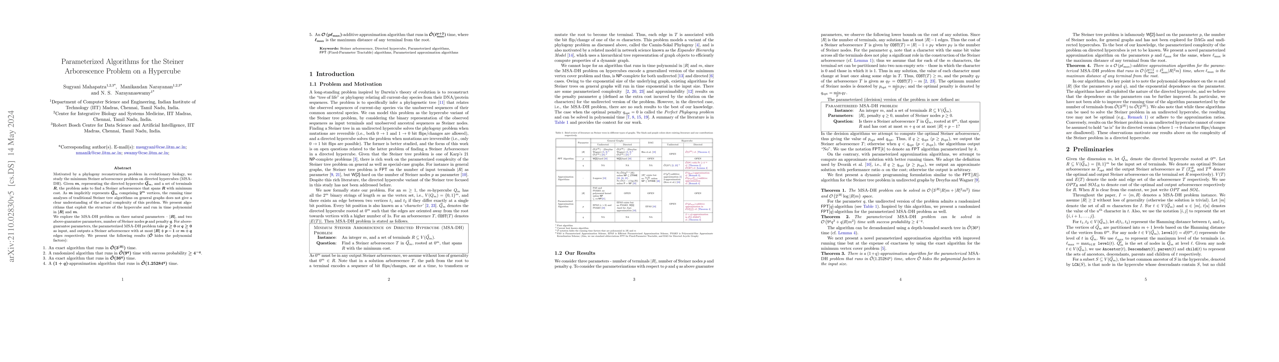 This paper addresses the Minimum Steiner Arborescence Problem on directed hypercubes (MSA-DH) motivated by phylogenetic reconstruction. It presents algorithms exploiting hypercube structure, achieving polynomial running times in terms of terminal set size and hypercube dimension, and explores exact, randomized, and approximation algorithms for different parameterized versions of the problem.