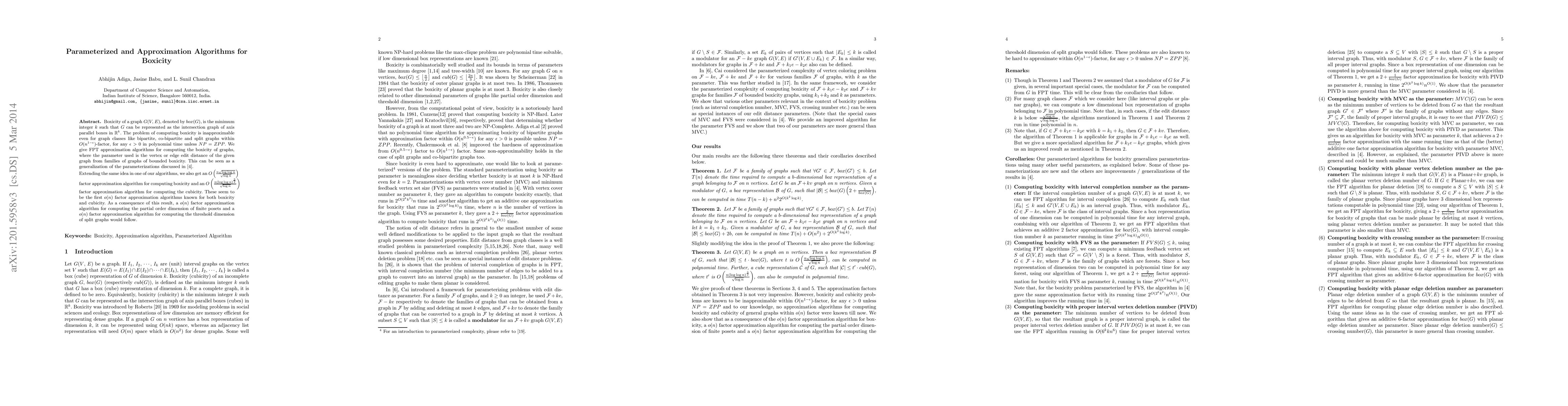 The paper presents parameterized and approximation algorithms for computing the boxicity of graphs, leveraging vertex or edge edit distance as a parameter. It introduces FPT algorithms for graphs with bounded boxicity and provides approximation algorithms for boxicity and cubicity with sublinear factors.