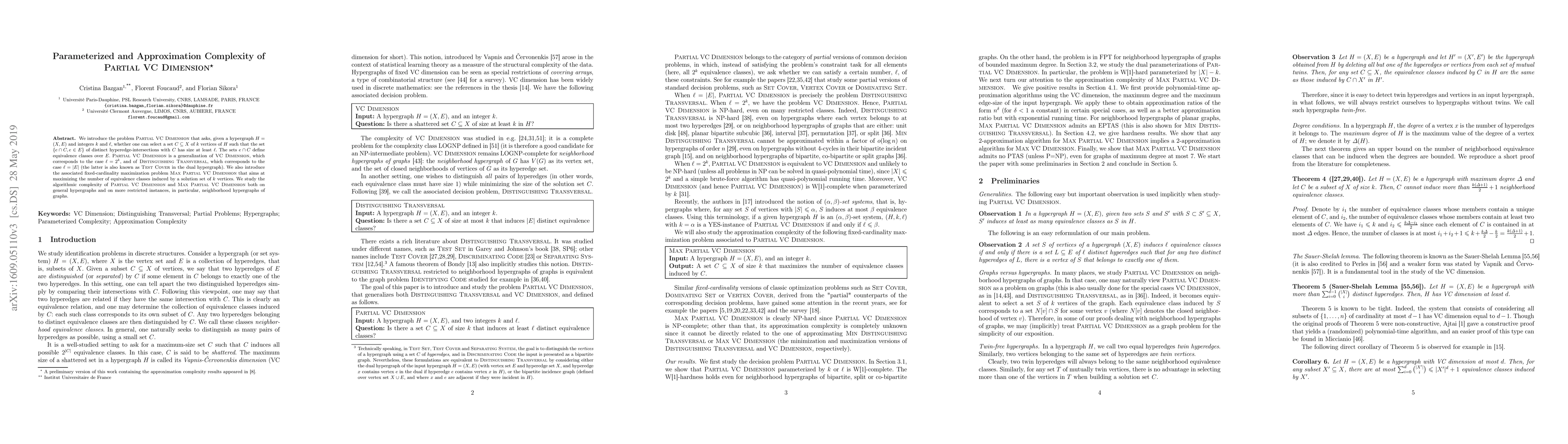 The paper introduces the problem of Partial VC Dimension, a generalization of VC Dimension and Distinguishing Transversal, and studies its algorithmic complexity on general hypergraphs and neighborhood hypergraphs of graphs.