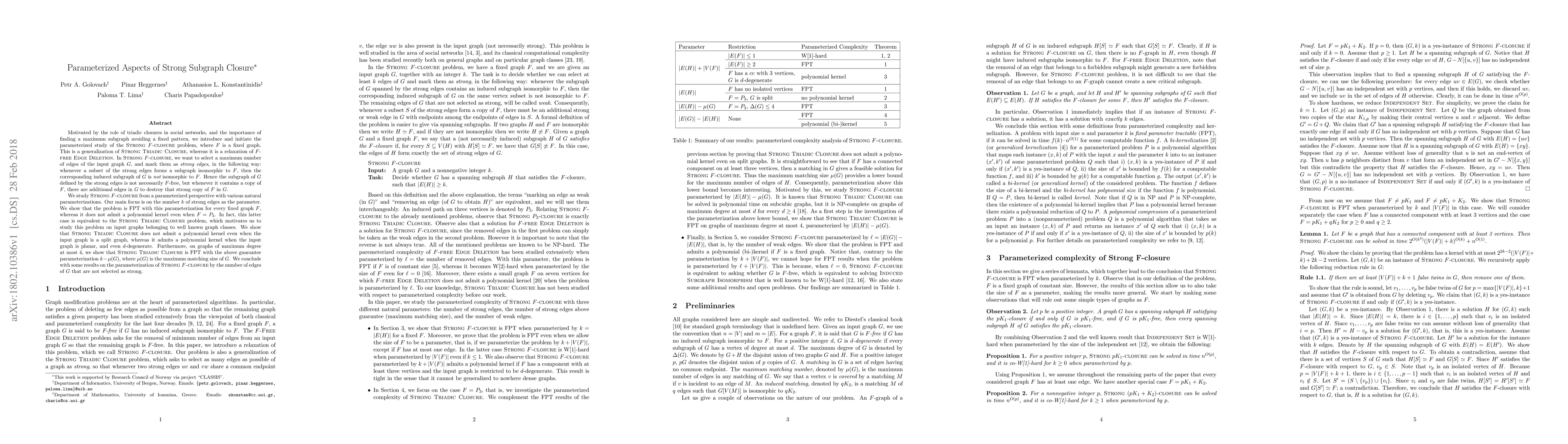 This paper explores the Strong F-closure problem, a generalization of Strong Triadic Closure, focusing on selecting edges to maximize a subgraph while avoiding a fixed pattern graph F. It demonstrates the problem is fixed-parameter tractable (FPT) with respect to the number of selected edges but does not admit a polynomial kernel unless P=NP. The study also reveals that Strong Triadic Closure does not have a polynomial kernel on split graphs but does on planar and d-degenerate graphs, and is FPT on graphs of maximum degree 4 with a specific parameterization.