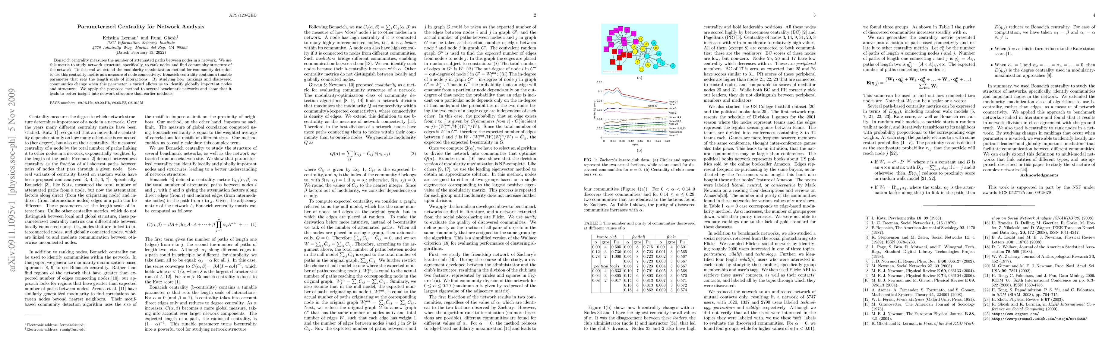 A new method for analyzing network structure uses parameterized centrality to rank nodes and identify communities, leading to better insights than existing methods.