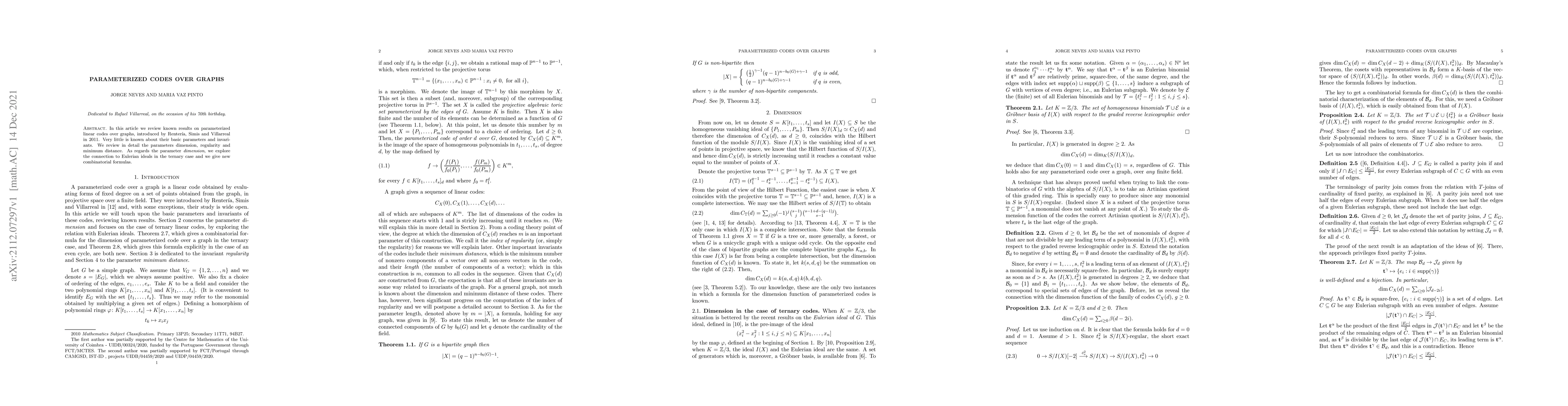 This paper reviews parameterized linear codes over graphs, focusing on dimension, regularity, and minimum distance. It explores connections to Eulerian ideals and provides new combinatorial formulas for the ternary case.
