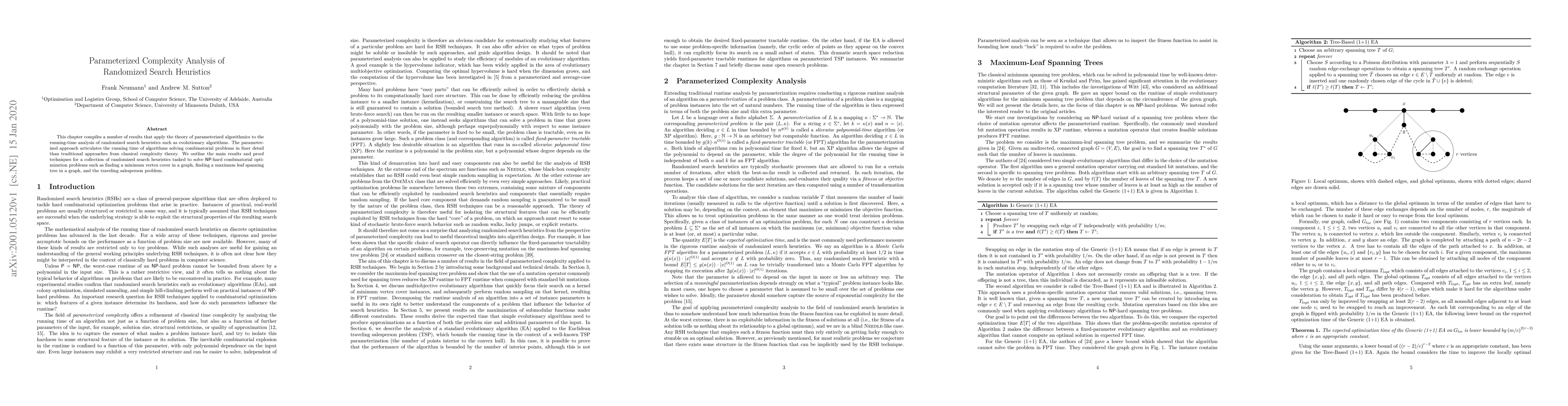This paper applies parameterized complexity theory to analyze the running times of randomized search heuristics like evolutionary algorithms for solving NP-hard problems. It provides detailed insights into the performance of these heuristics for specific combinatorial optimization problems.