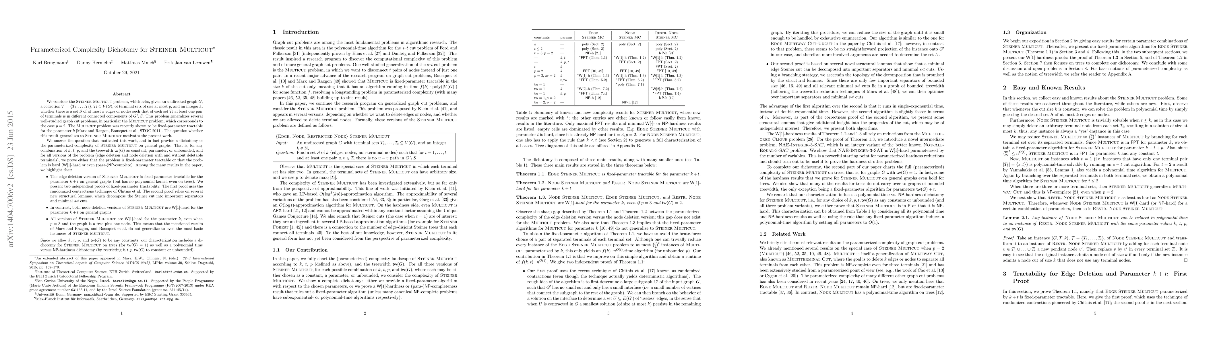 This paper studies the parameterized complexity of the Steiner Multicut problem, showing a dichotomy: it is either fixed-parameter tractable or (para-)NP-complete/W[1]-hard depending on the parameters k, t, p, and graph treewidth. Edge deletion versions are FPT for k+t, while node deletion versions are W[1]-hard for k+t, and all versions are W[1]-hard for k even for small p and simple graphs.