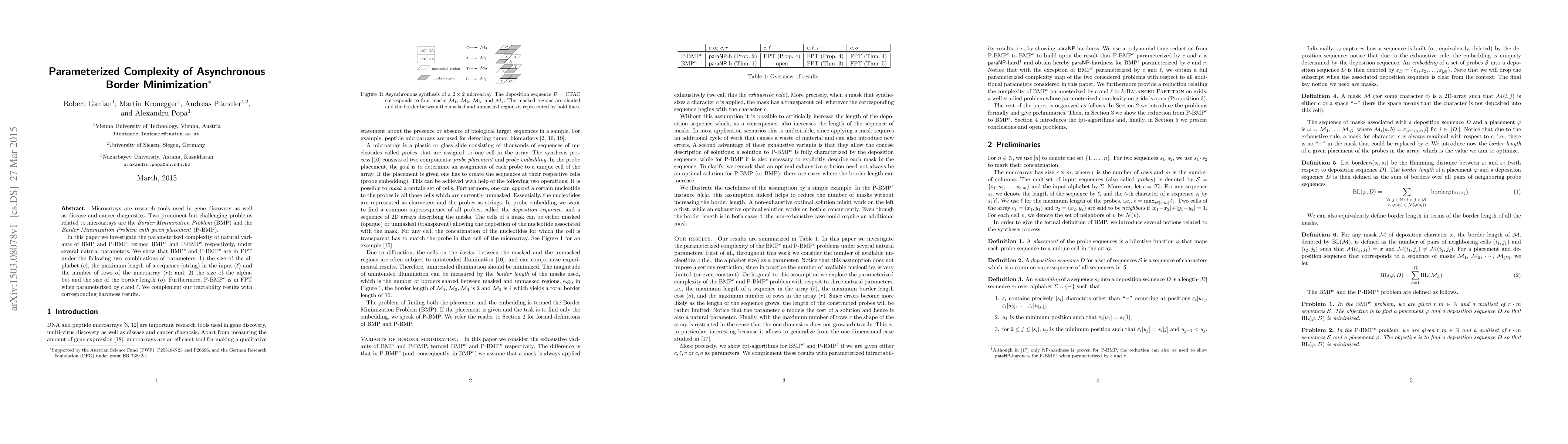 This paper explores the parameterized complexity of the Border Minimization Problem (BMP) and its variant with given placement (P-BMP) in the context of microarrays. It demonstrates that both BMP and P-BMP are fixed-parameter tractable under specific parameter combinations, while also presenting corresponding hardness results.
