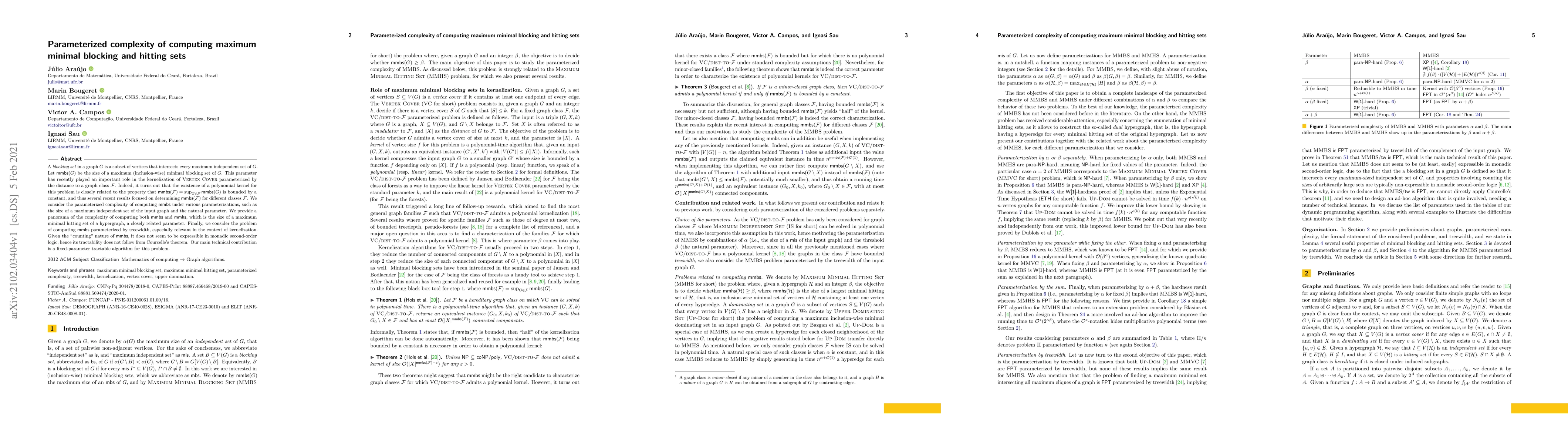 A blocking set in a graph $G$ is a subset of vertices that intersects every maximum independent set of $G$. Let ${\sf mmbs}(G)$ be the size of a maximum (inclusion-wise) minimal blocking set of $G$. This parameter has recently played an important role in the kernelization of Vertex Cover parameterized by the distance to a graph class ${\cal F}$. Indeed, it turns out that the existence of a polynomial kernel for this problem is closely related to the property that ${\sf mmbs}({\cal F})=\sup_{G \in {\cal F}}{\sf mmbs}(G)$ is bounded by a constant, and thus several recent results focused on determining ${\sf mmbs}({\cal F})$ for different classes ${\cal F}$. We consider the parameterized complexity of computing ${\sf mmbs}$ under various parameterizations, such as the size of a maximum independent set of the input graph and the natural parameter. We provide a panorama of the complexity of computing both ${\sf mmbs}$ and ${\sf mmhs}$, which is the size of a maximum minimal hitting set of a hypergraph, a closely related parameter. Finally, we consider the problem of computing ${\sf mmbs}$ parameterized by treewidth, especially relevant in the context of kernelization. Given the "counting" nature of ${\sf mmbs}$, it does not seem to be expressible in monadic second-order logic, hence its tractability does not follow from Courcelle's theorem. Our main technical contribution is a fixed-parameter tractable algorithm for this problem.