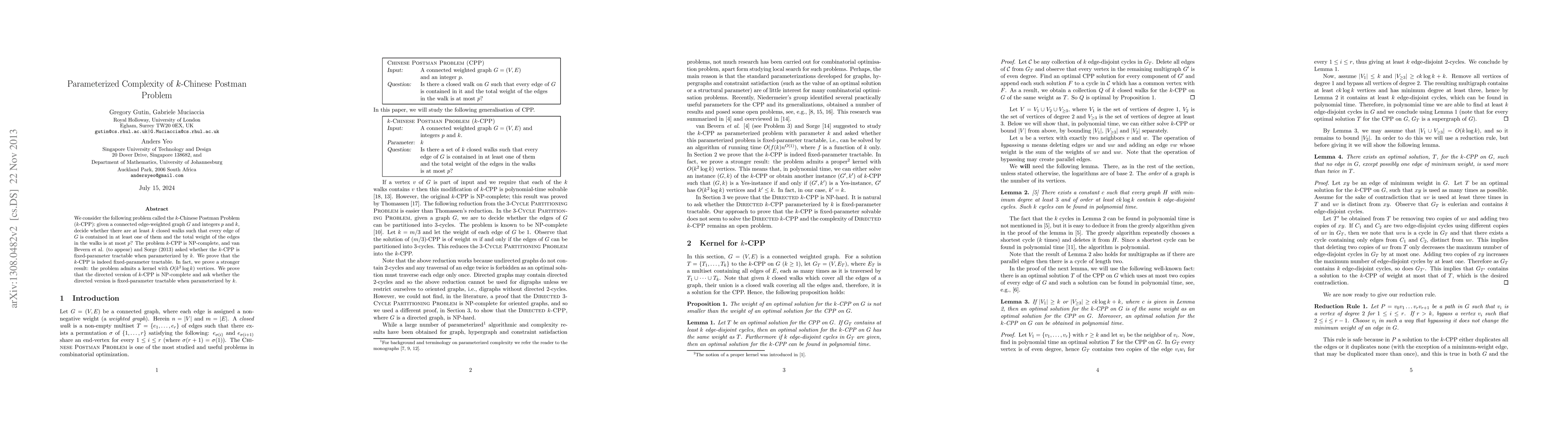 The $k$-Chinese Postman Problem ($k$-CPP) asks if a connected edge-weighted graph can be covered by at least $k$ closed walks with total weight no more than $p$. The paper proves that $k$-CPP is fixed-parameter tractable and admits a kernel with $O(k^2\log k)$ vertices. The directed version of $k$-CPP is shown to be NP-complete.