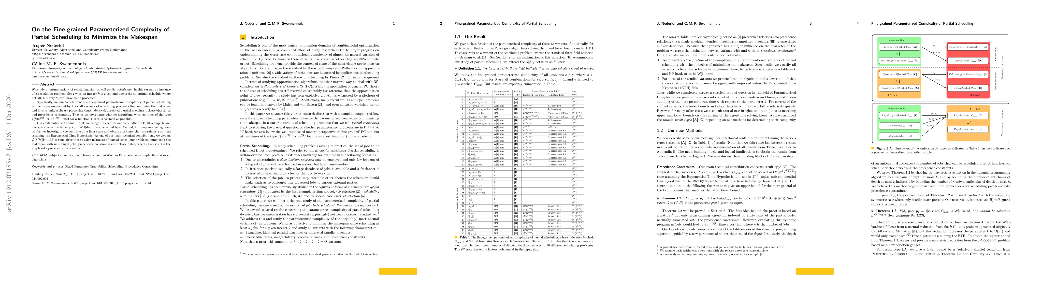 We study a natural variant of scheduling that we call \emph{partial scheduling}: In this variant an instance of a scheduling problem along with an integer $k$ is given and one seeks an optimal schedule where not all, but only $k$ jobs, have to be processed. Specifically, we aim to determine the fine-grained parameterized complexity of partial scheduling problems parameterized by $k$ for all variants of scheduling problems that minimize the makespan and involve unit/arbitrary processing times, identical/unrelated parallel machines, release/due dates, and precedence constraints. That is, we investigate whether algorithms with runtimes of the type $f(k)n^{\mathcal{O}(1)}$ or $n^{\mathcal{O}(f(k))}$ exist for a function $f$ that is as small as possible. Our contribution is two-fold: First, we categorize each variant to be either in $\mathsf{P}$, $\mathsf{NP}$-complete and fixed-parameter tractable by $k$, or $\mathsf{W}[1]$-hard parameterized by $k$. Second, for many interesting cases we further investigate the run time on a finer scale and obtain run times that are (almost) optimal assuming the Exponential Time Hypothesis. As one of our main technical contributions, we give an $\mathcal{O}(8^kk(|V|+|E|))$ time algorithm to solve instances of partial scheduling problems minimizing the makespan with unit length jobs, precedence constraints and release dates, where $G=(V,E)$ is the graph with precedence constraints.