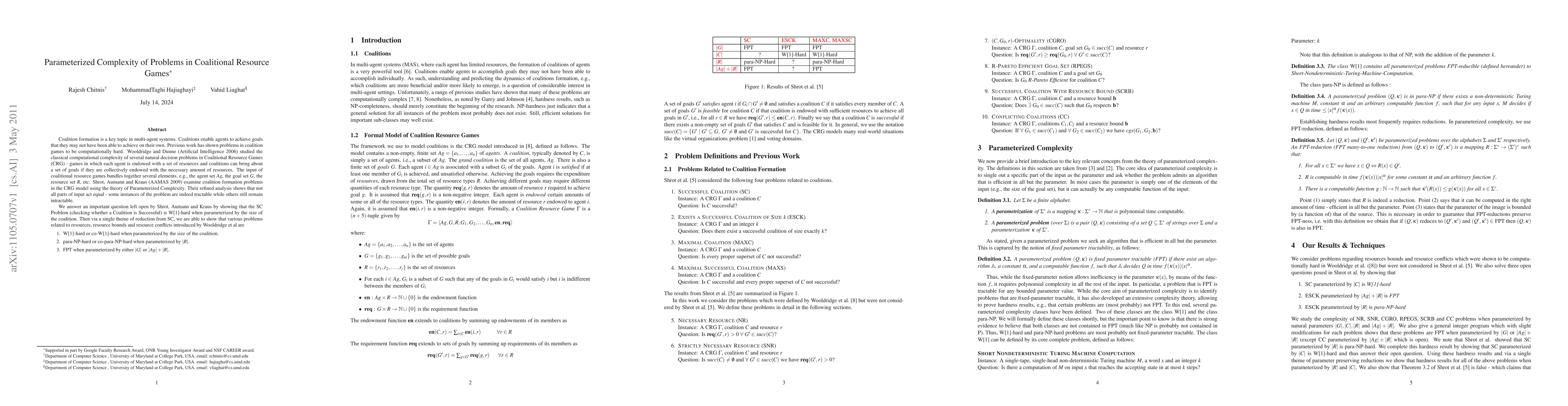 This work extends previous research by Shrot, Aumann, and Kraus (2009) by providing a more detailed parameterized complexity analysis, identifying new hardness results, and presenting FPT algorithms for several problems under specific parameterizations.