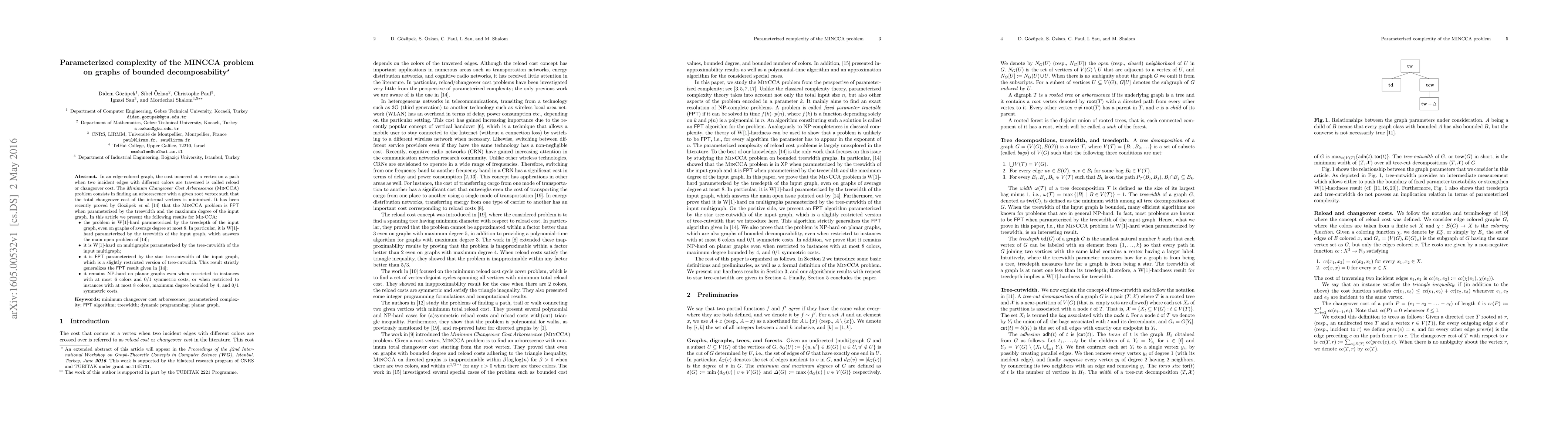 In an edge-colored graph, the cost incurred at a vertex on a path when two incident edges with different colors are traversed is called reload or changeover cost. The "Minimum Changeover Cost Arborescence" (MINCCA) problem consists in finding an arborescence with a given root vertex such that the total changeover cost of the internal vertices is minimized. It has been recently proved by G\"oz\"upek et al. [TCS 2016] that the problem is FPT when parameterized by the treewidth and the maximum degree of the input graph. In this article we present the following results for the MINCCA problem: - the problem is W[1]-hard parameterized by the treedepth of the input graph, even on graphs of average degree at most 8. In particular, it is W[1]-hard parameterized by the treewidth of the input graph, which answers the main open problem of G\"oz\"upek et al. [TCS 2016]; - it is W[1]-hard on multigraphs parameterized by the tree-cutwidth of the input multigraph; - it is FPT parameterized by the star tree-cutwidth of the input graph, which is a slightly restricted version of tree-cutwidth. This result strictly generalizes the FPT result given in G\"oz\"upek et al. [TCS 2016]; - it remains NP-hard on planar graphs even when restricted to instances with at most 6 colors and 0/1 symmetric costs, or when restricted to instances with at most 8 colors, maximum degree bounded by 4, and 0/1 symmetric costs.