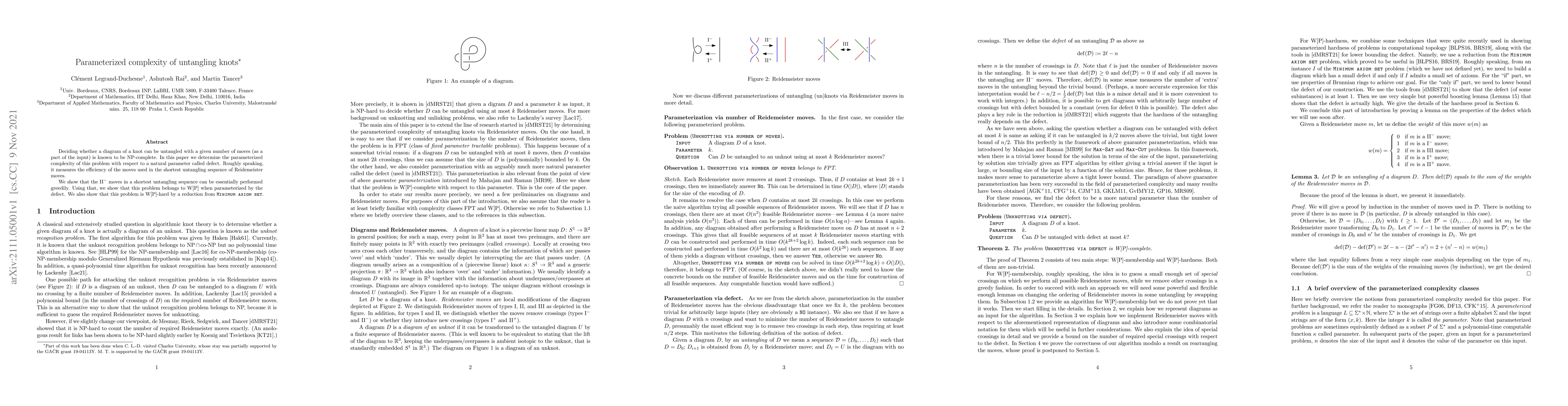 The novelty lies in demonstrating that II-moves can be essentially performed greedily, leading to a W[P] classification of the knot untangling problem, which was previously only known to be NP-complete.