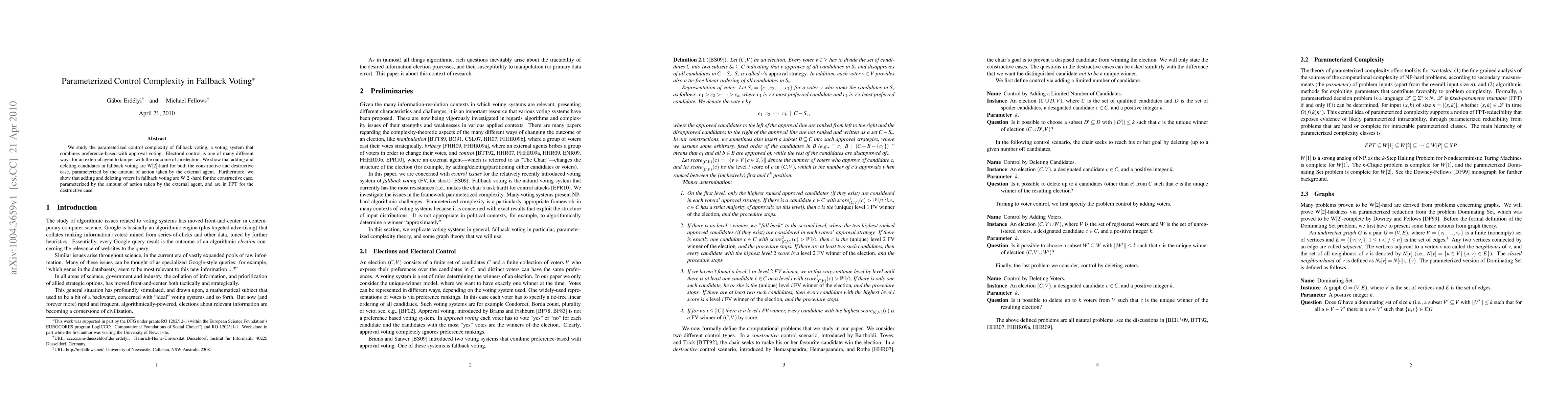 This paper investigates the parameterized control complexity of fallback voting, demonstrating that adding or deleting candidates is W[2]-hard for both constructive and destructive control scenarios. It also finds that adding or deleting voters is W[2]-hard for constructive control but in FPT for destructive control, parameterized by the agent's action.