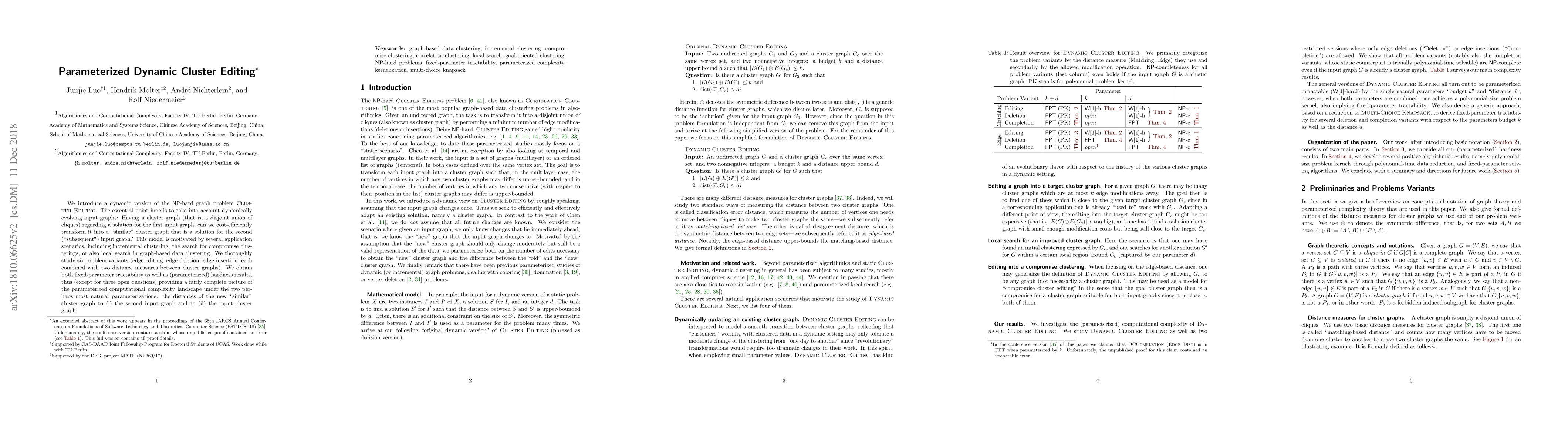 This paper explores a dynamic version of the NP-hard Cluster Editing problem, focusing on transforming a cluster graph solution for one input graph to another for a subsequent input graph. It studies six problem variants and provides fixed-parameter tractability and hardness results, offering a comprehensive view of the computational complexity landscape under two natural parameterizations.
