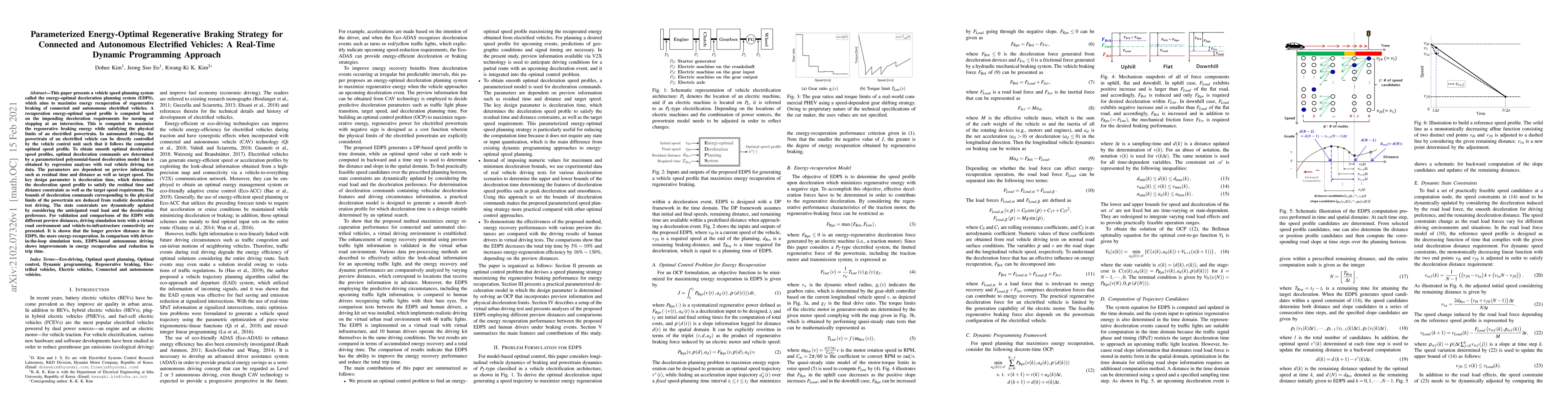 This paper introduces a real-time dynamic programming approach for an energy-optimal deceleration planning system (EDPS) to maximize regenerative braking in connected and autonomous electric vehicles. The EDPS computes optimal speed profiles based on deceleration requirements, utilizing parameterized polynomial models derived from real driving data to ensure smooth transitions and energy efficiency.