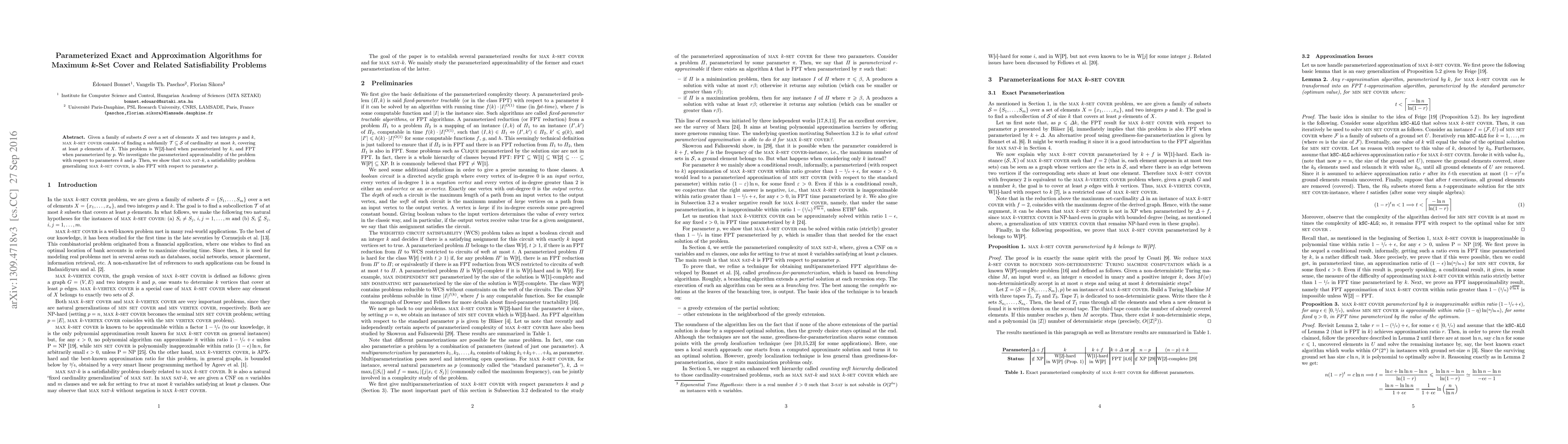 Given a family of subsets $\mathcal S$ over a set of elements~$X$ and two integers~$p$ and~$k$, Max k-Set Cover consists of finding a subfamily~$\mathcal T \subseteq \mathcal S$ of cardinality at most~$k$, covering at least~$p$ elements of~$X$. This problem is W[2]-hard when parameterized by~$k$, and FPT when parameterized by $p$. We investigate the parameterized approximability of the problem with respect to parameters~$k$ and~$p$. Then, we show that Max Sat-k, a satisfiability problem generalizing Max k-Set Cover, is also FPT with respect to parameter~$p$.