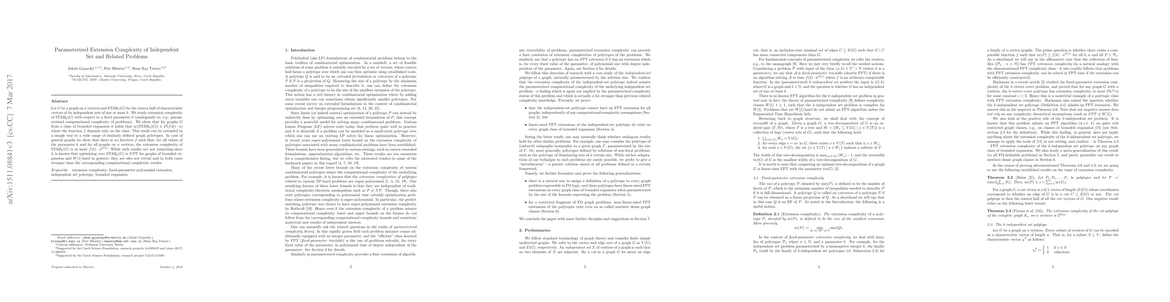 The research combines structural graph theory with parameterized complexity to derive novel bounds on the extension complexity of independent set polytopes, distinguishing between bounded expansion classes and general graphs, thereby advancing our understanding of the intricate relationship between computational complexity and polytope extensions.