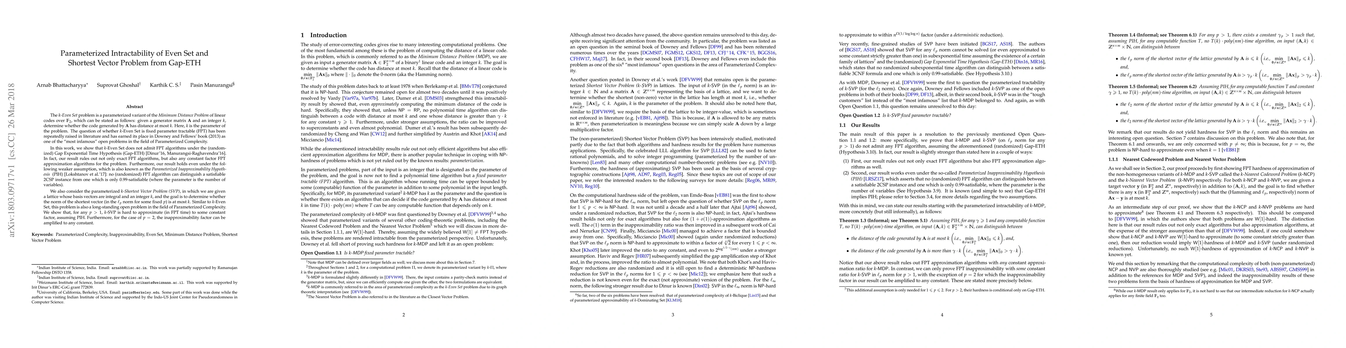 The paper introduces novel reductions and leverages the Parameterized Inapproximability Hypothesis to establish intractability results for parameterized Even Set and Shortest Vector Problems in various norms.