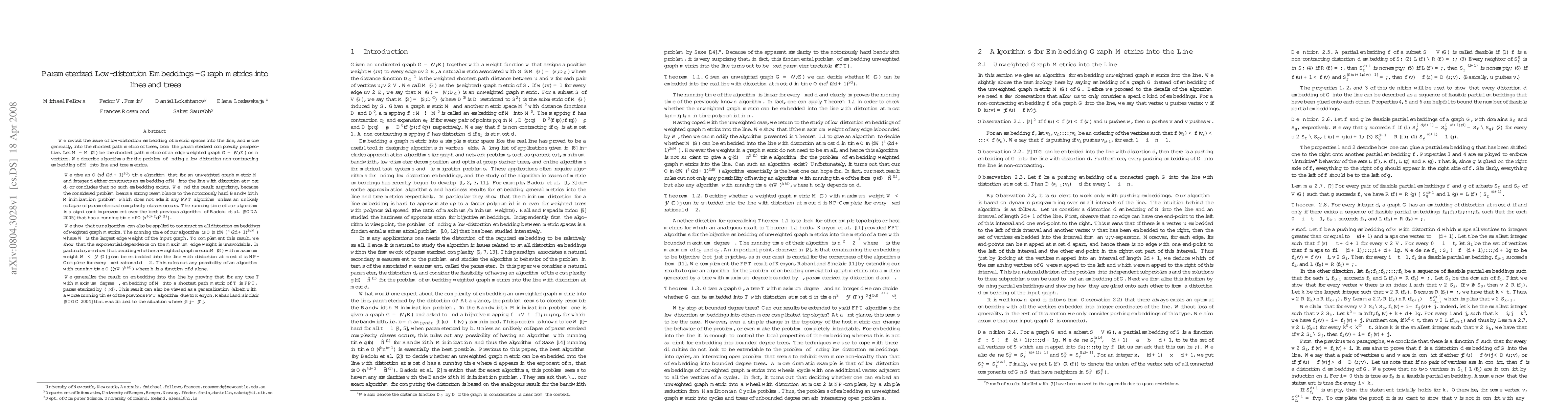This paper presents algorithms for finding low-distortion embeddings of graph metrics into lines and trees, parameterized by the distortion level $d$. It introduces an efficient algorithm for unweighted graphs and extends it to handle weighted graphs, while proving NP-completeness for weighted cases and establishing fixed-parameter tractability for embeddings into tree metrics.