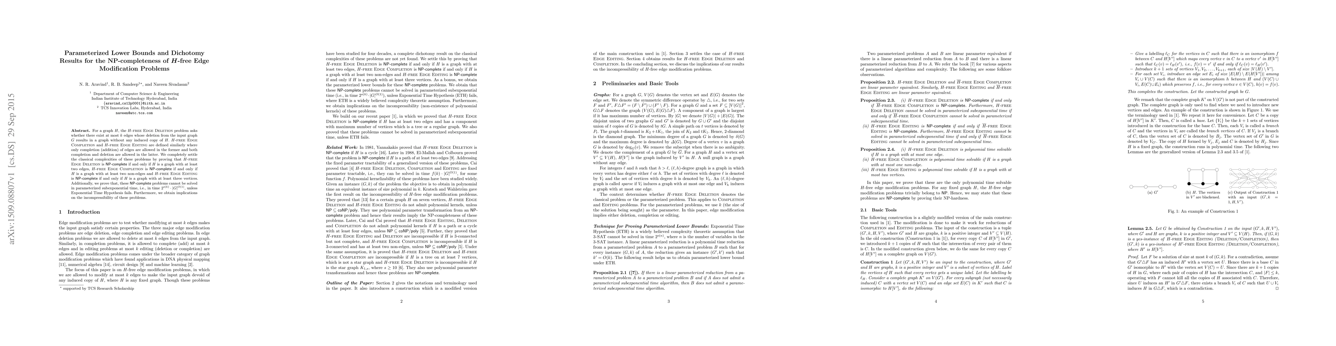 This paper establishes the NP-completeness for $H$-free Edge Deletion, Edge Completion, and Edge Editing problems based on the structure of $H$, and proves that these problems cannot be solved in parameterized subexponential time, unless the Exponential Time Hypothesis is false.