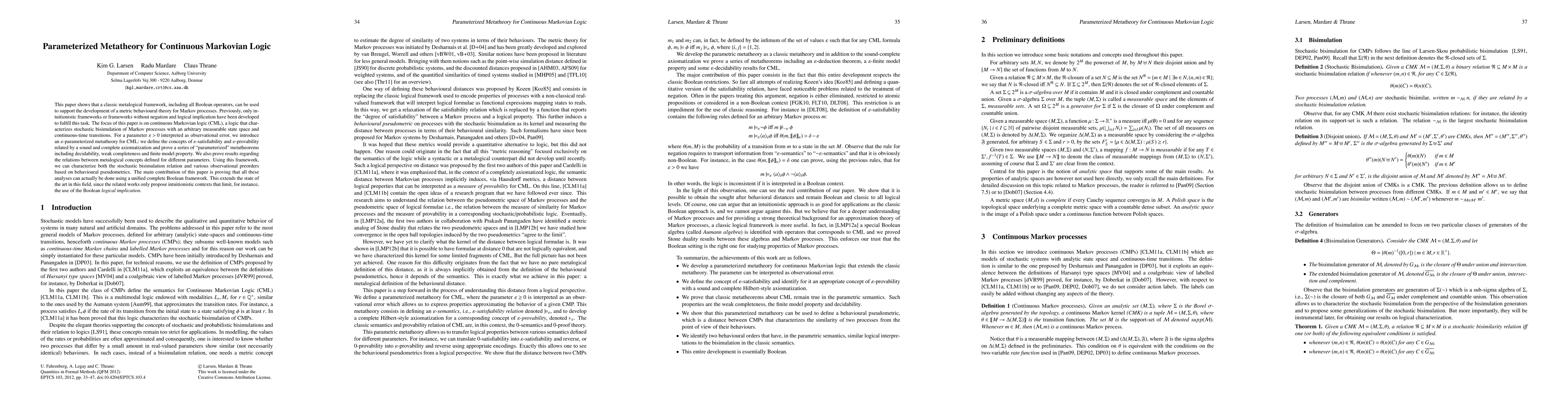 This paper shows that a classic metalogical framework, including all Boolean operators, can be used to support the development of a metric behavioural theory for Markov processes. Previously, only intuitionistic frameworks or frameworks without negation and logical implication have been developed to fulfill this task. The focus of this paper is on continuous Markovian logic (CML), a logic that characterizes stochastic bisimulation of Markov processes with an arbitrary measurable state space and continuous-time transitions. For a parameter epsilon>0 interpreted as observational error, we introduce an epsilon-parameterized metatheory for CML: we define the concepts of epsilon-satisfiability and epsilon-provability related by a sound and complete axiomatization and prove a series of "parameterized" metatheorems including decidability, weak completeness and finite model property. We also prove results regarding the relations between metalogical concepts defined for different parameters. Using this framework, we can characterize both the stochastic bisimulation relation and various observational preorders based on behavioural pseudometrics. The main contribution of this paper is proving that all these analyses can actually be done using a unified complete Boolean framework. This extends the state of the art in this field, since the related works only propose intuitionistic contexts that limit, for instance, the use of the Boolean logical implication.