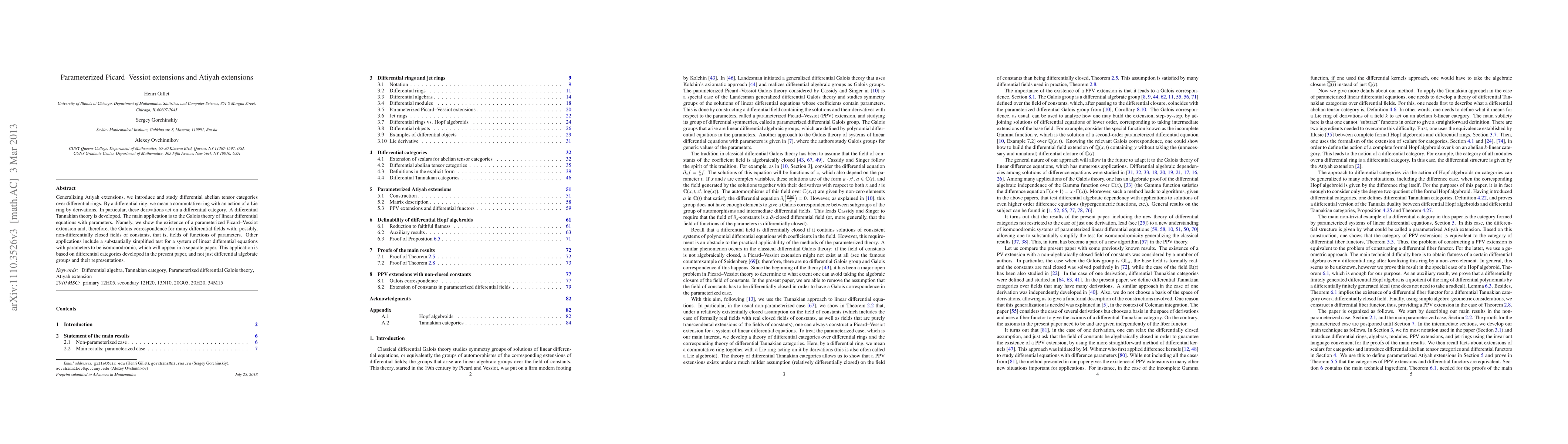 Generalizing Atiyah extensions, we introduce and study differential abelian tensor categories over differential rings. By a differential ring, we mean a commutative ring with an action of a Lie ring by derivations. In particular, these derivations act on a differential category. A differential Tannakian theory is developed. The main application is to the Galois theory of linear differential equations with parameters. Namely, we show the existence of a parameterized Picard-Vessiot extension and, therefore, the Galois correspondence for many differential fields with, possibly, non-differentially closed fields of constants, that is, fields of functions of parameters. Other applications include a substantially simplified test for a system of linear differential equations with parameters to be isomonodromic, which will appear in a separate paper. This application is based on differential categories developed in the present paper, and not just differential algebraic groups and their representations.