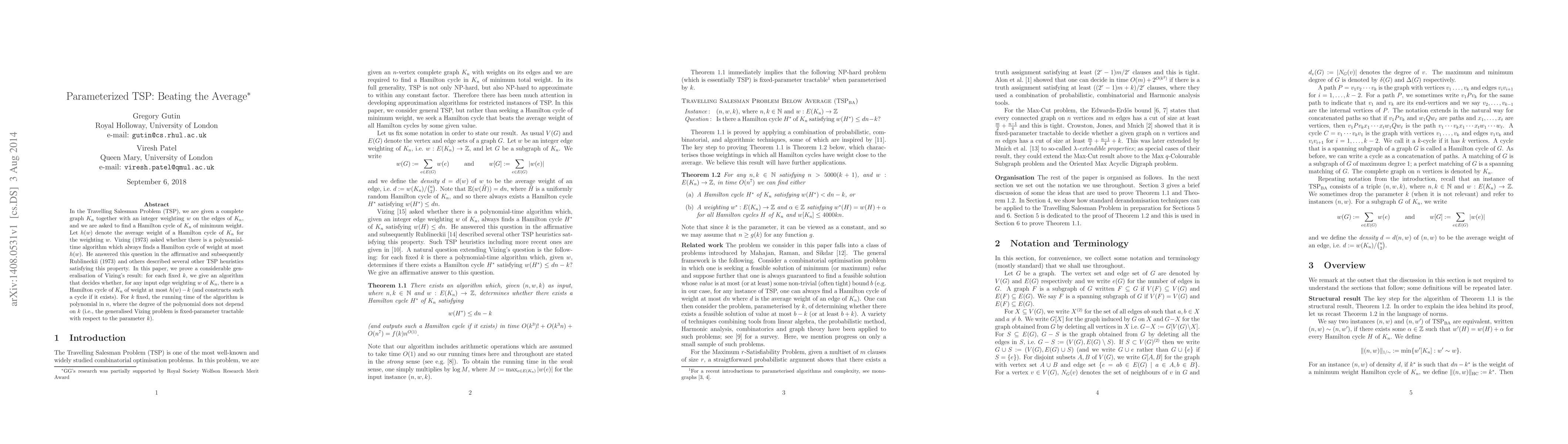 In the Travelling Salesman Problem (TSP), we are given a complete graph $K_n$ together with an integer weighting $w$ on the edges of $K_n$, and we are asked to find a Hamilton cycle of $K_n$ of minimum weight. Let $h(w)$ denote the average weight of a Hamilton cycle of $K_n$ for the weighting $w$. Vizing (1973) asked whether there is a polynomial-time algorithm which always finds a Hamilton cycle of weight at most $h(w)$. He answered this question in the affirmative and subsequently Rublineckii (1973) and others described several other TSP heuristics satisfying this property. In this paper, we prove a considerable generalisation of Vizing's result: for each fixed $k$, we give an algorithm that decides whether, for any input edge weighting $w$ of $K_n$, there is a Hamilton cycle of $K_n$ of weight at most $h(w)-k$ (and constructs such a cycle if it exists). For $k$ fixed, the running time of the algorithm is polynomial in $n$, where the degree of the polynomial does not depend on $k$ (i.e., the generalised Vizing problem is fixed-parameter tractable with respect to the parameter $k$).