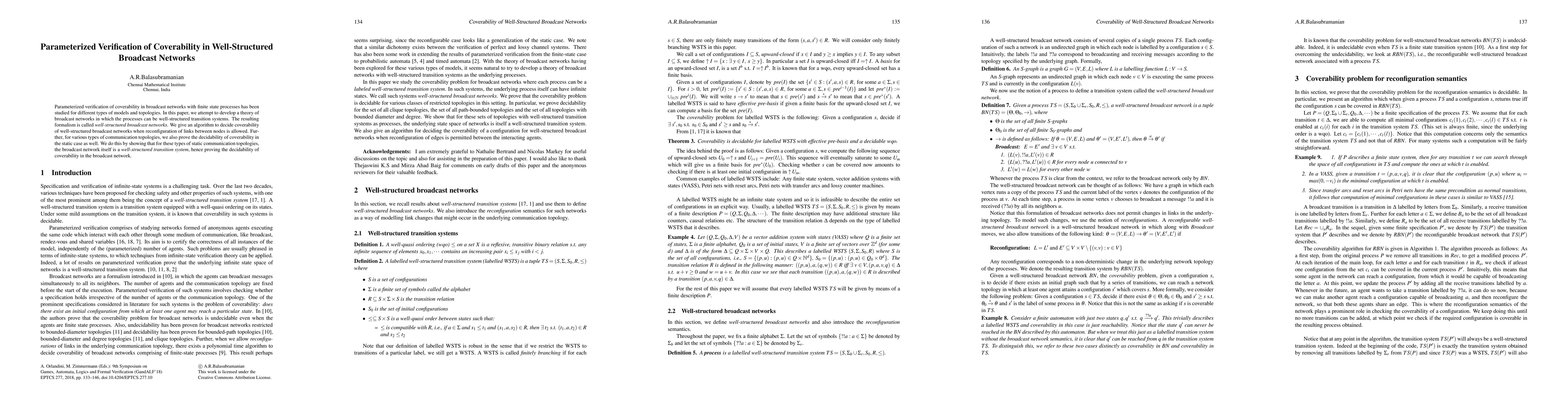 This paper develops a theory for well-structured broadcast networks where processes are modeled as well-structured transition systems. It presents an algorithm for deciding coverability when network links can reconfigure, and proves decidability for static communication topologies by showing they form well-structured transition systems.