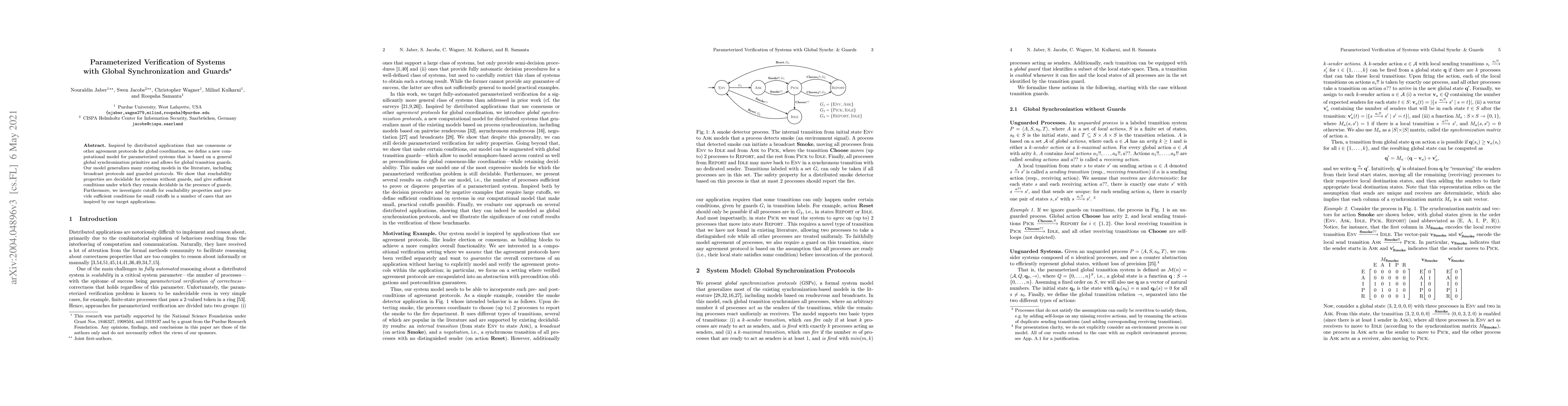 Researchers developed a new model for parameterized systems that can handle global synchronization and guards, showing decidable reachability properties without guards and conditions for maintaining decidability with guards.