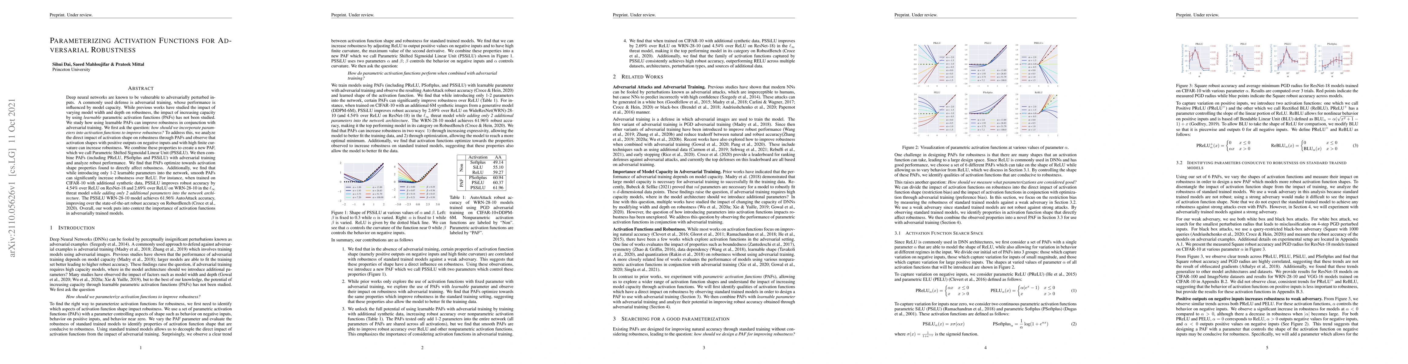 Deep neural networks are known to be vulnerable to adversarially perturbed inputs. A commonly used defense is adversarial training, whose performance is influenced by model capacity. While previous works have studied the impact of varying model width and depth on robustness, the impact of increasing capacity by using learnable parametric activation functions (PAFs) has not been studied. We study how using learnable PAFs can improve robustness in conjunction with adversarial training. We first ask the question: how should we incorporate parameters into activation functions to improve robustness? To address this, we analyze the direct impact of activation shape on robustness through PAFs and observe that activation shapes with positive outputs on negative inputs and with high finite curvature can increase robustness. We combine these properties to create a new PAF, which we call Parametric Shifted Sigmoidal Linear Unit (PSSiLU). We then combine PAFs (including PReLU, PSoftplus and PSSiLU) with adversarial training and analyze robust performance. We find that PAFs optimize towards activation shape properties found to directly affect robustness. Additionally, we find that while introducing only 1-2 learnable parameters into the network, smooth PAFs can significantly increase robustness over ReLU. For instance, when trained on CIFAR-10 with additional synthetic data, PSSiLU improves robust accuracy by 4.54% over ReLU on ResNet-18 and 2.69% over ReLU on WRN-28-10 in the $\ell_{\infty}$ threat model while adding only 2 additional parameters into the network architecture. The PSSiLU WRN-28-10 model achieves 61.96% AutoAttack accuracy, improving over the state-of-the-art robust accuracy on RobustBench (Croce et al., 2020).