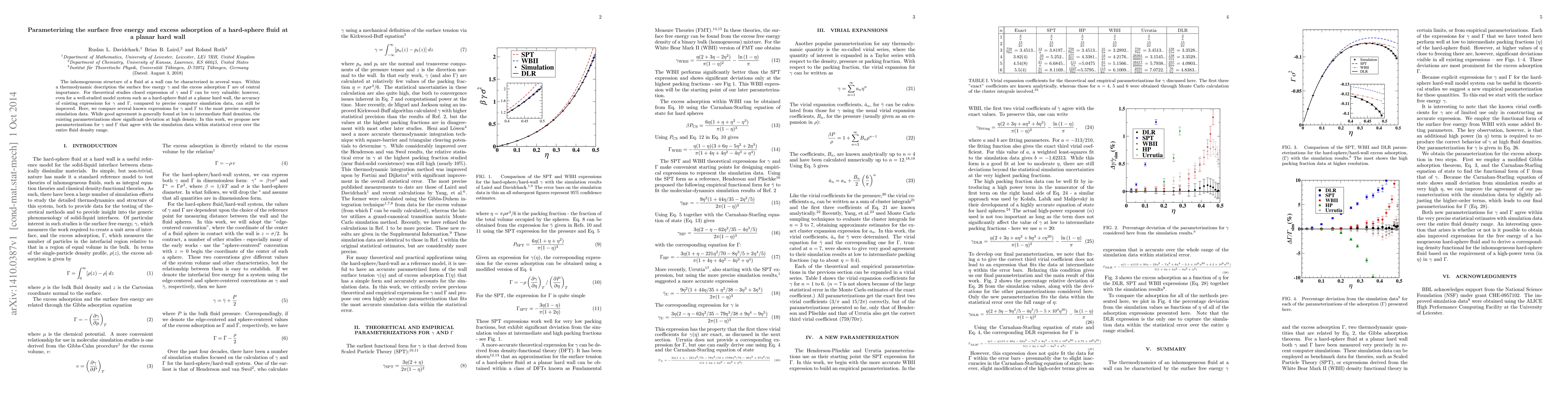 This paper proposes new parameterizations for the surface free energy and excess adsorption of a hard-sphere fluid at a planar hard wall, improving accuracy over existing expressions, especially at high fluid densities, by comparing them against precise computer simulation data.