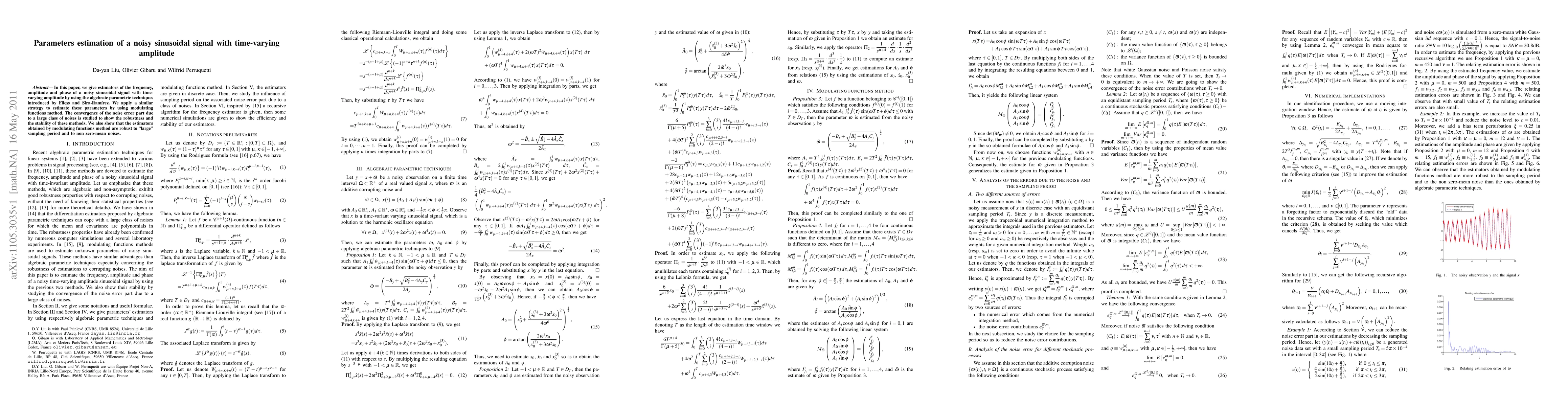 This paper presents methods for estimating frequency, amplitude, and phase of noisy sinusoidal signals with time-varying amplitude, showing robustness to various types of noise and sampling periods.