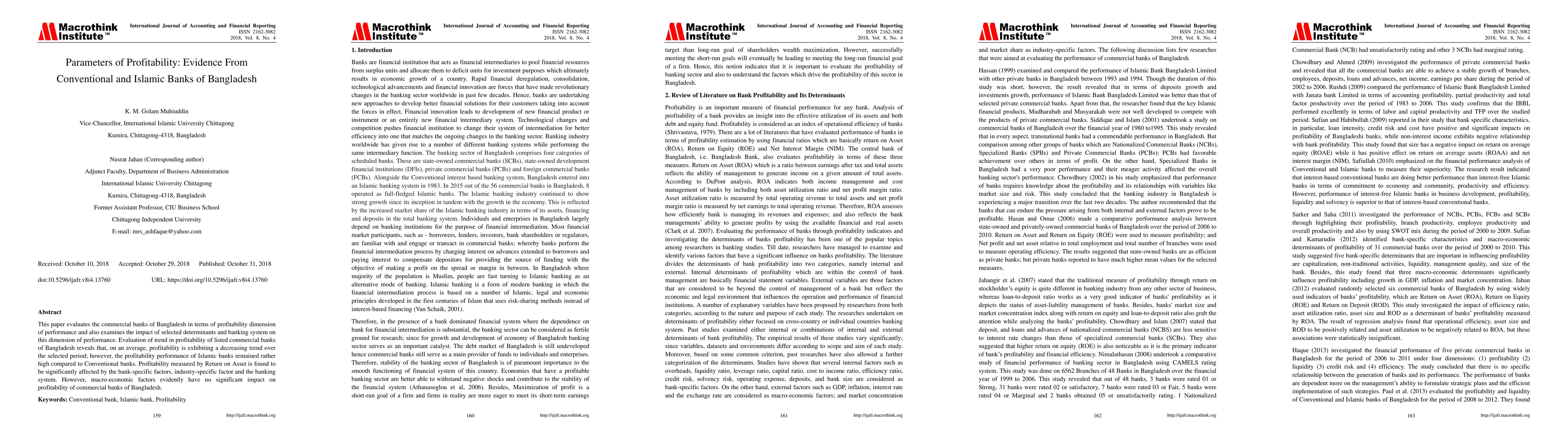 This study contributes to the existing literature by providing new insights into the determinants of bank profitability in Bangladesh, particularly with regards to Islamic banks.