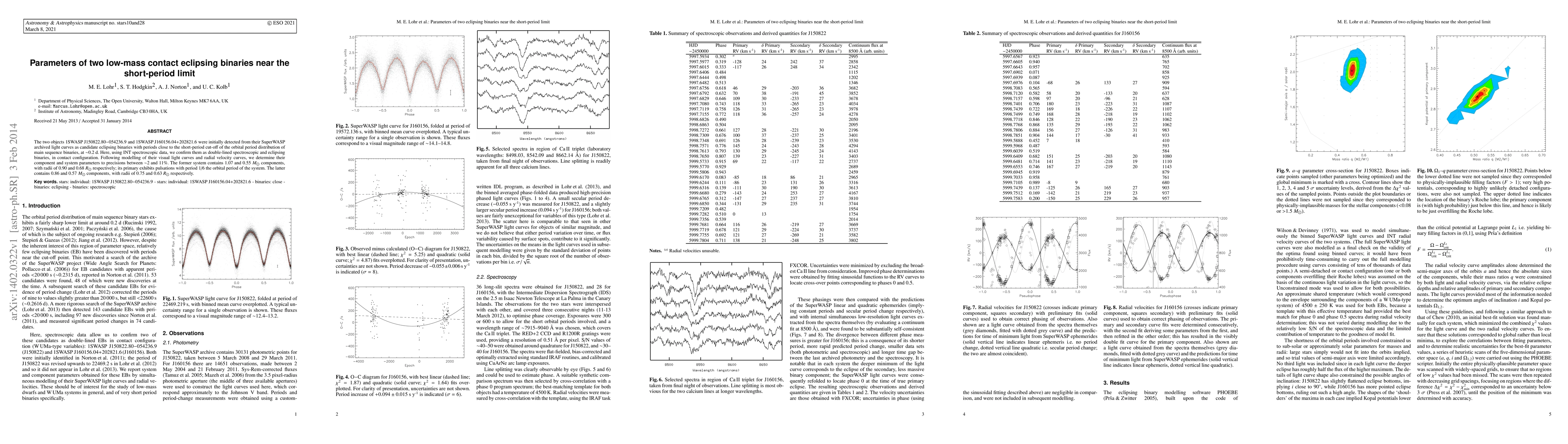 This paper confirms two low-mass contact eclipsing binaries, 1SWASP J150822.80-054236.9 and 1SWASP J160156.04+202821.6, near the short-period limit of main sequence binaries, using INT spectroscopic data and precise modelling of their light and radial velocity curves.