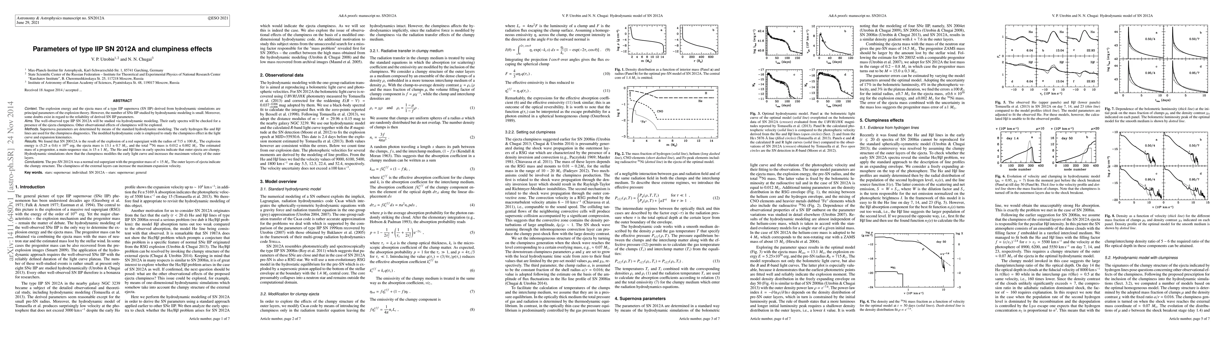 Researchers used hydrodynamic simulations to study the type IIP supernova SN 2012A, finding it resulted from a red supergiant explosion with high energy and ejecta mass, and that outer layers were clumpy, affecting light curve and expansion velocity.
