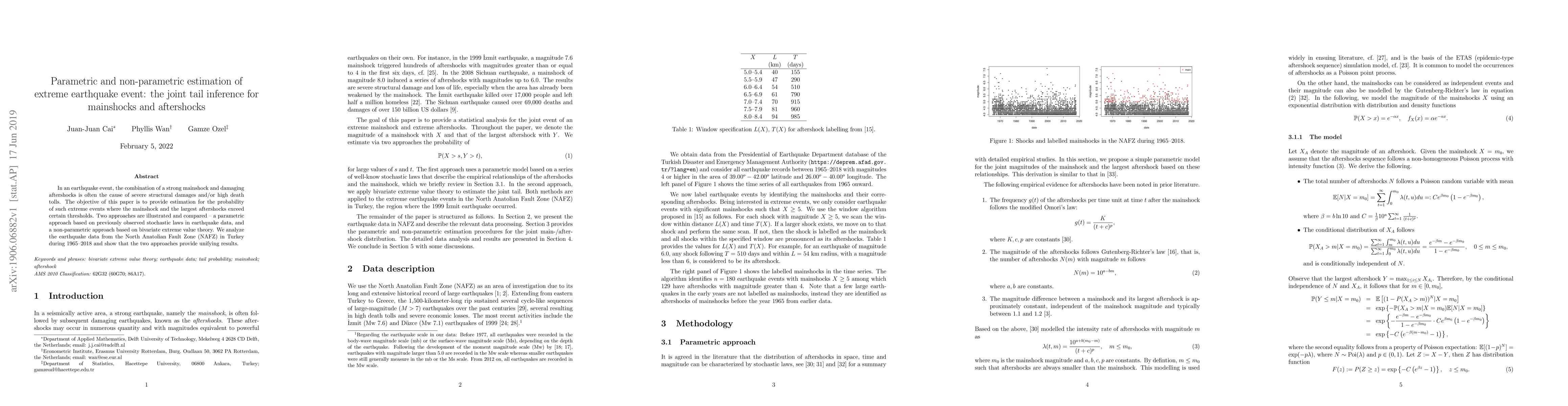 This paper explores the estimation of extreme earthquake events, focusing on the joint probability of mainshocks and aftershocks exceeding certain thresholds. It compares parametric and non-parametric methods, analyzing data from the North Anatolian Fault Zone, and finds both approaches yield consistent results.