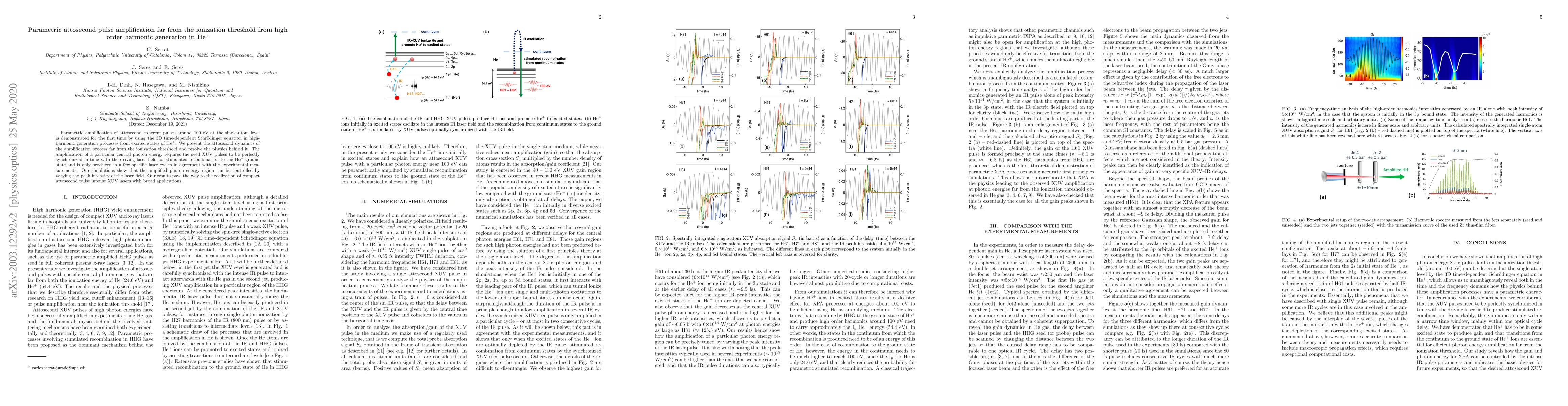 This paper demonstrates the first parametric amplification of attosecond pulses around 100 eV from high-order harmonic generation in He$^+$, revealing the underlying physics and synchronization requirements. The study shows that the peak intensity of the laser field can control the amplified photon energy region, paving the way for compact attosecond pulse XUV lasers.