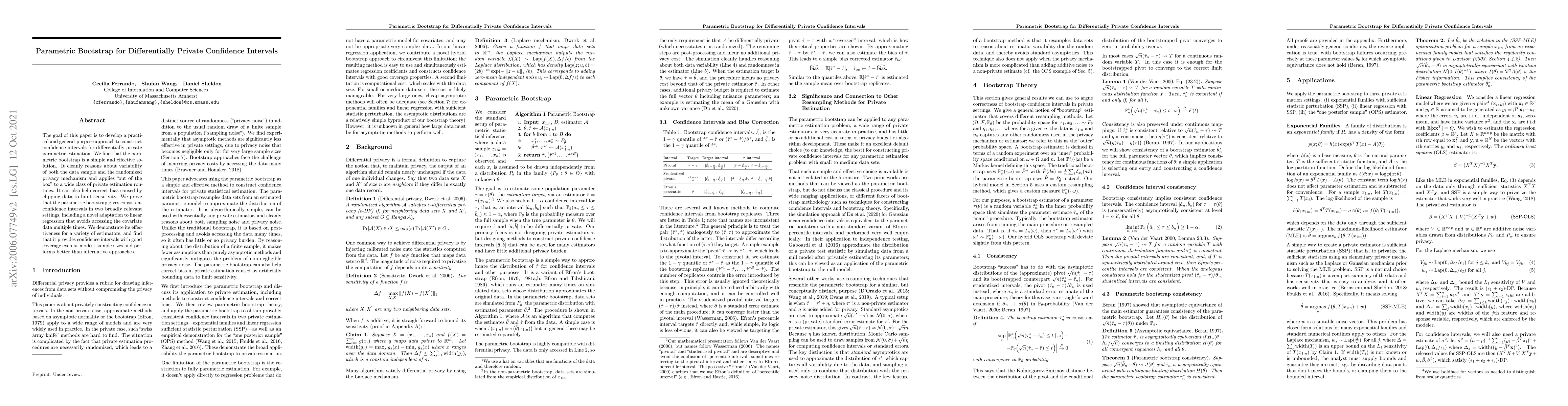 This paper proposes a parametric bootstrap method to construct differentially private confidence intervals, demonstrating its effectiveness across various estimators and settings. It proves the method's consistency and shows better performance than alternatives, particularly in linear regression through a novel adaptation.
