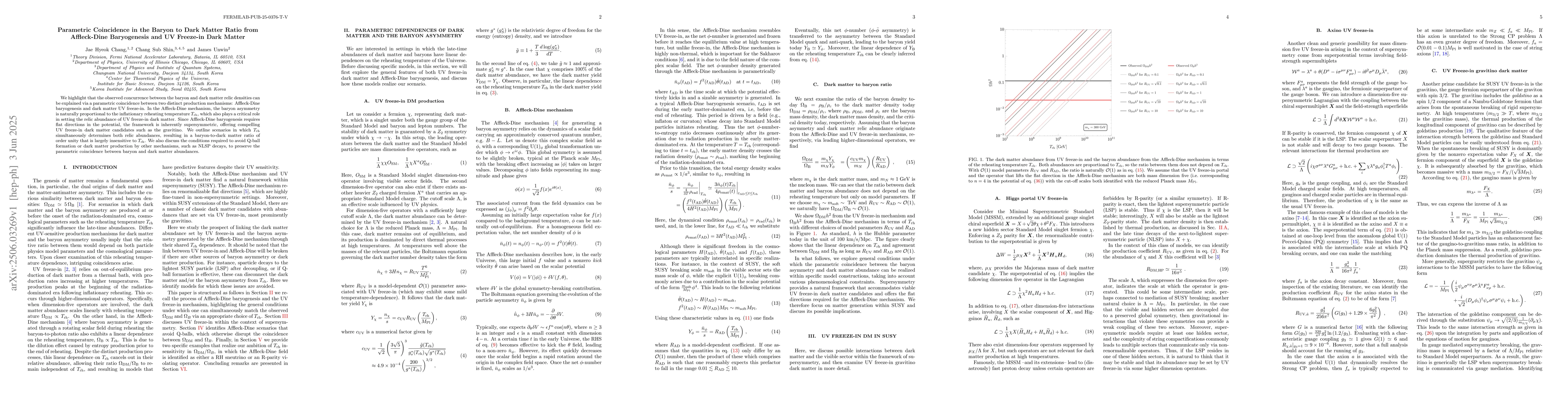 Researchers find a connection between baryon and dark matter relic densities via a 'parametric coincidence' in two distinct production mechanisms: Affleck-Dine baryogenesis and UV freeze-in dark matter, which can produce a ratio of order unity.