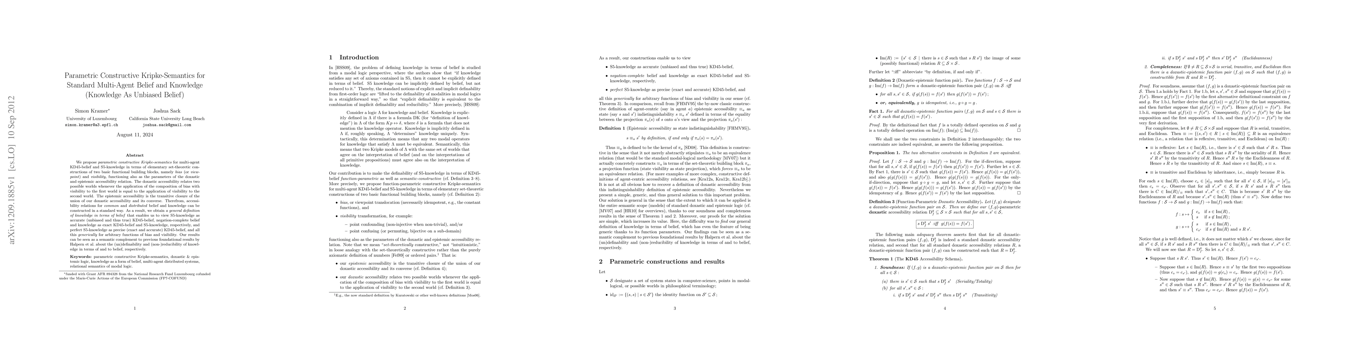 We propose parametric constructive Kripke-semantics for multi-agent KD45-belief and S5-knowledge in terms of elementary set-theoretic constructions of two basic functional building blocks, namely bias (or viewpoint) and visibility, functioning also as the parameters of the doxastic and epistemic accessibility relation. The doxastic accessibility relates two possible worlds whenever the application of the composition of bias with visibility to the first world is equal to the application of visibility to the second world. The epistemic accessibility is the transitive closure of the union of our doxastic accessibility and its converse. Therefrom, accessibility relations for common and distributed belief and knowledge can be constructed in a standard way. As a result, we obtain a general definition of knowledge in terms of belief that enables us to view S5-knowledge as accurate (unbiased and thus true) KD45-belief, negation-complete belief and knowledge as exact KD45-belief and S5-knowledge, respectively, and perfect S5-knowledge as precise (exact and accurate) KD45-belief, and all this generically for arbitrary functions of bias and visibility. Our results can be seen as a semantic complement to previous foundational results by Halpern et al. about the (un)definability and (non-)reducibility of knowledge in terms of and to belief, respectively.