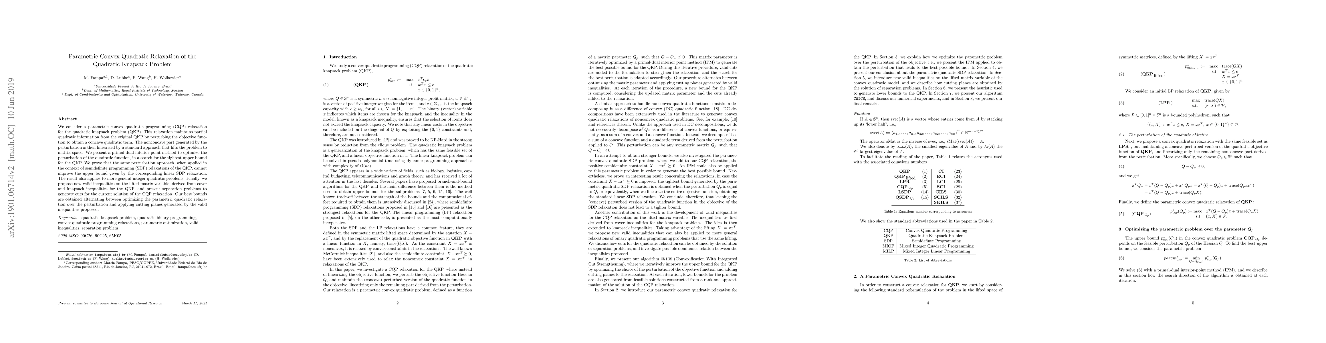 This paper proposes a parametric convex quadratic programming relaxation for the quadratic knapsack problem, optimizing a perturbed objective to find the tightest upper bound. It also introduces new valid inequalities and cutting planes to improve the relaxation, demonstrating that this approach cannot surpass the bounds of linear semidefinite programming relaxations.