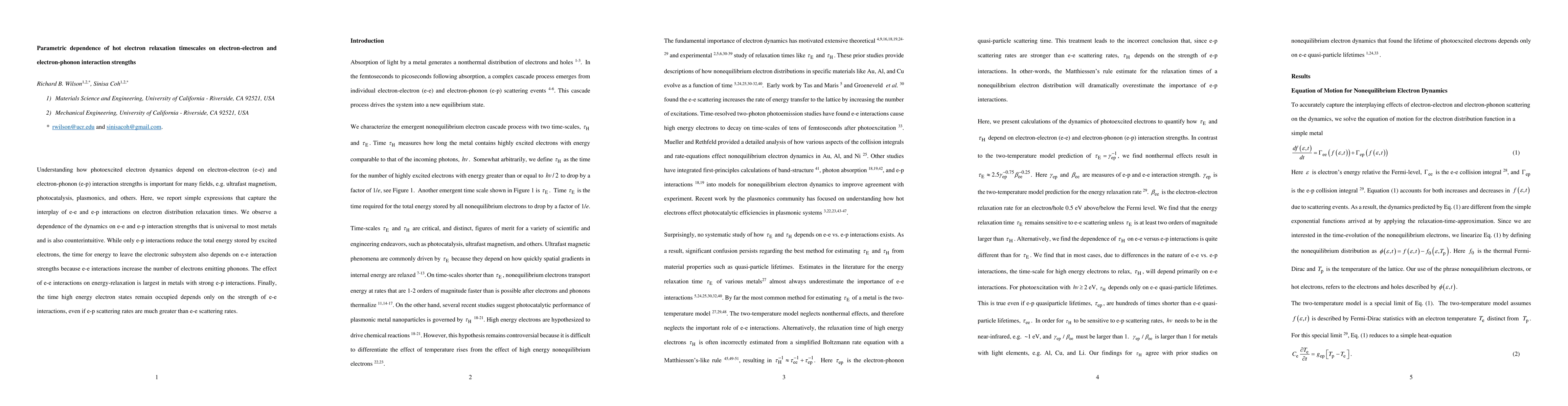Understanding how photoexcited electron dynamics depend on electron-electron (e-e) and electron-phonon (e-p) interaction strengths is important for many fields, e.g. ultrafast magnetism, photocatalysis, plasmonics, and others. Here, we report simple expressions that capture the interplay of e-e and e-p interactions on electron distribution relaxation times. We observe a dependence of the dynamics on e-e and e-p interaction strengths that is universal to most metals and is also counterintuitive. While only e-p interactions reduce the total energy stored by excited electrons, the time for energy to leave the electronic subsystem also depends on e-e interaction strengths because e-e interactions increase the number of electrons emitting phonons. The effect of e-e interactions on energy-relaxation is largest in metals with strong e-p interactions. Finally, the time high energy electron states remain occupied depends only on the strength of e-e interactions, even if e-p scattering rates are much greater than e-e scattering rates.