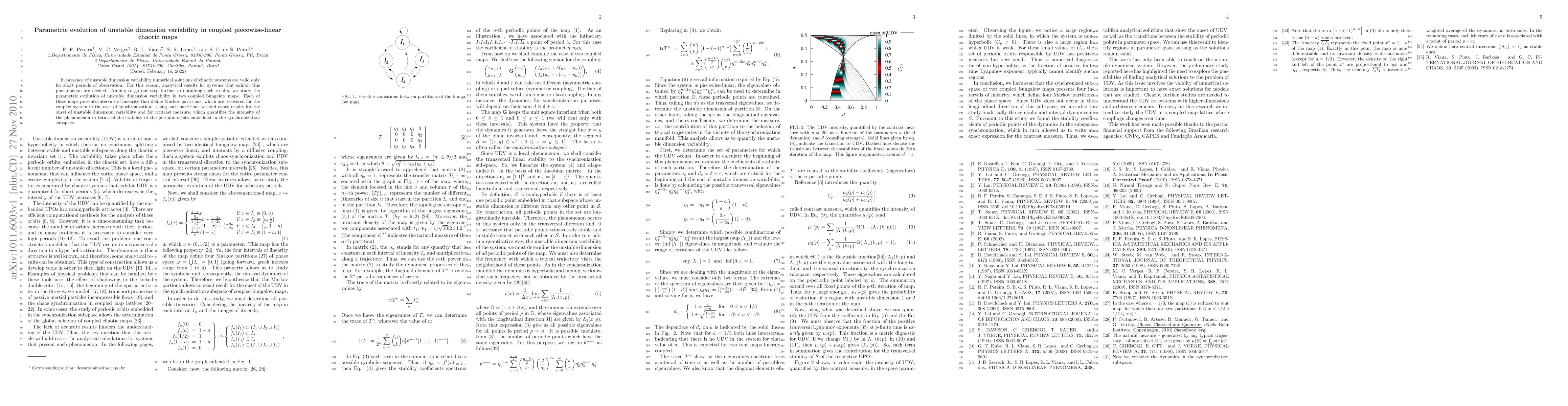 The study examines the parametric evolution of unstable dimension variability in coupled piecewise-linear chaotic maps, specifically focusing on two coupled bungalow maps. The research utilizes Markov partitions derived from intervals of linearity to find exact results for the onset of unstable dimension variability and for a contrast measure quantifying the phenomenon's intensity.