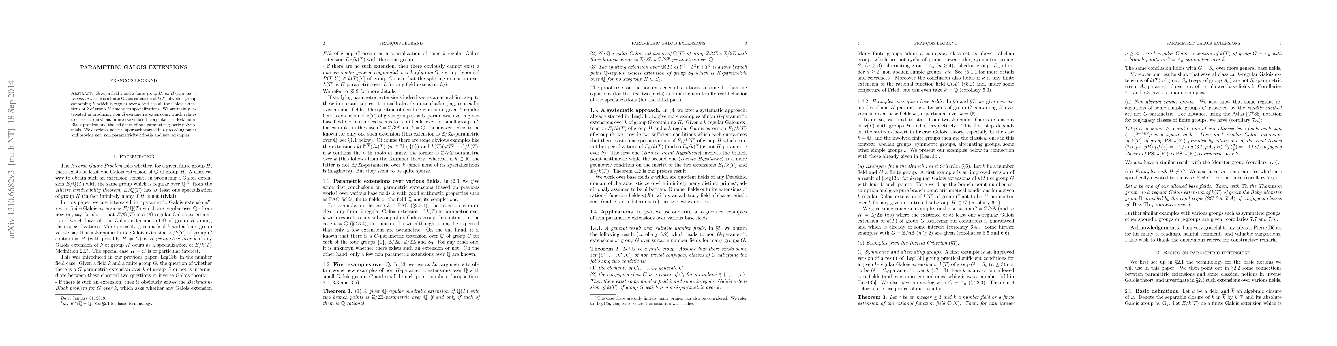 Given a field $k$ and a finite group $H$, {\it{an $H$-parametric extension over $k$}} is a finite Galois extension of $k(T)$ of Galois group containing $H$ which is regular over $k$ and has all the Galois extensions of $k$ of group $H$ among its specializations. We are mainly interested in producing non $H$-parametric extensions, which relates to classical questions in inverse Galois theory like the Beckmann-Black problem and the existence of one parameter generic polynomials. We develop a general approach started in a preceding paper and provide new non parametricity criteria and new examples.