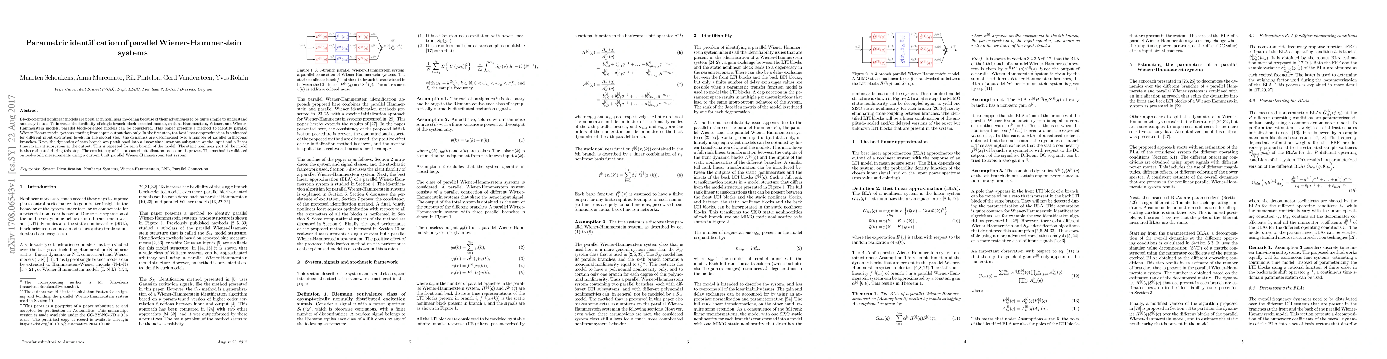 This paper proposes a method for identifying parallel Wiener-Hammerstein systems using input-output data, involving the estimation of linear approximations and decomposition of dynamics into parallel branches, followed by validation on a custom test system. The method's initialization procedure consistency is proven.