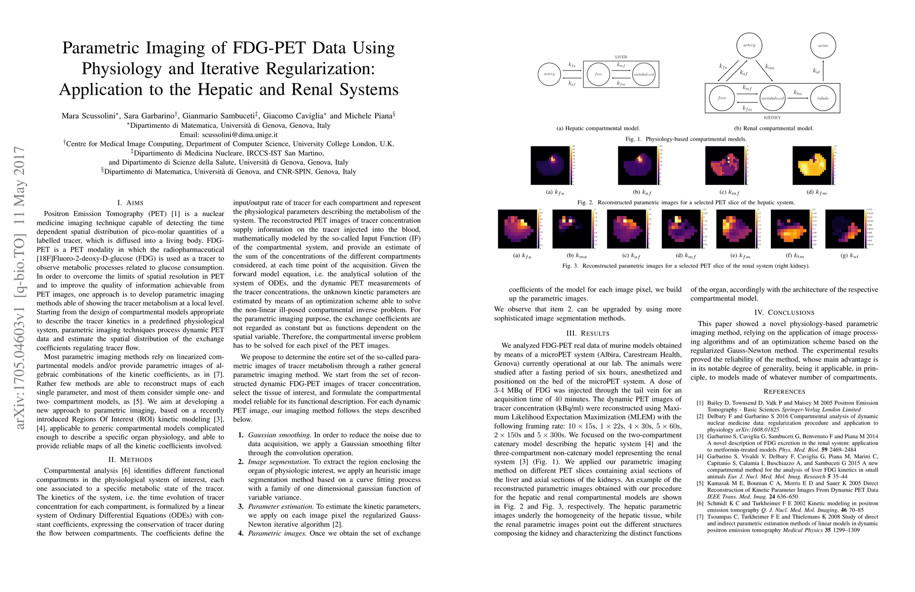 A new method for parametric imaging of FDG-PET data is proposed, using physiology and iterative regularization to accurately determine kinetic parameters governing tracer flow in organs like the liver and kidneys.