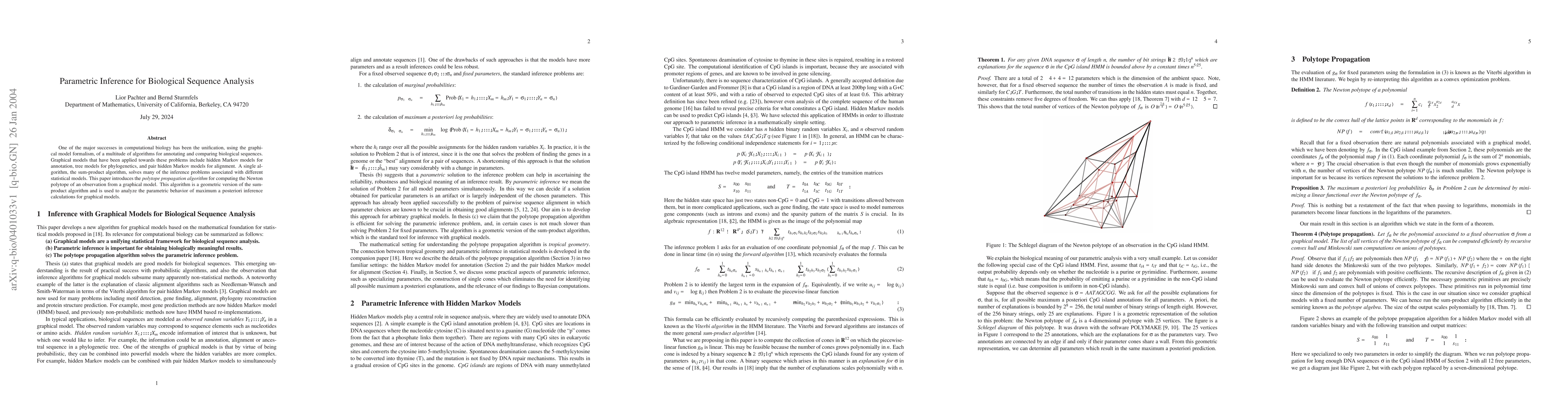 The polytope propagation algorithm is introduced for analyzing parametric behavior of maximum a posteriori inference calculations in graphical models, solving inference problems associated with various statistical models.