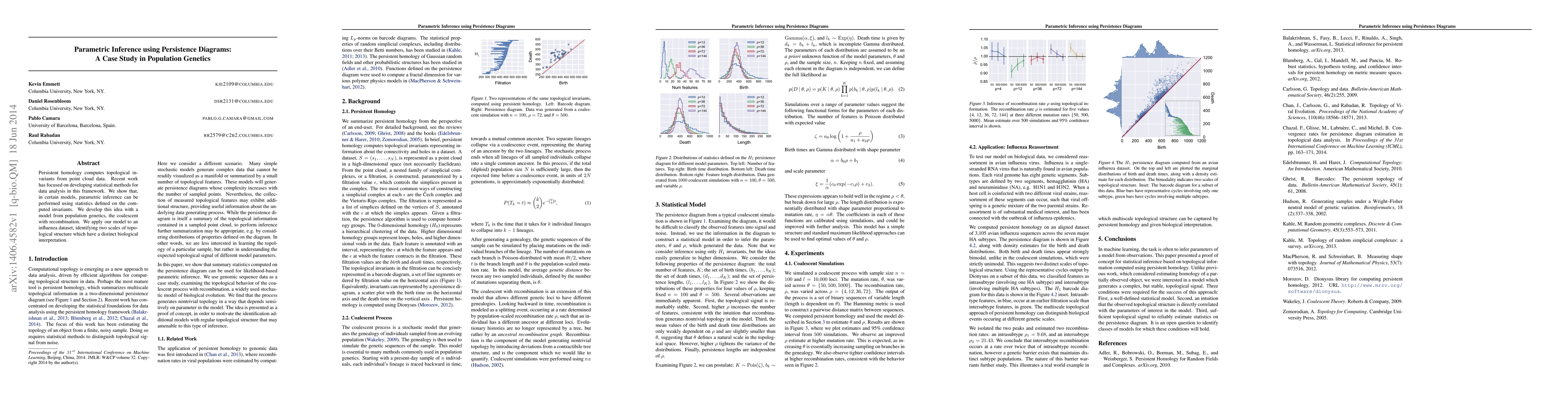 Persistent homology computes topological invariants from point cloud data. Recent work has focused on developing statistical methods for data analysis in this framework. We show that, in certain models, parametric inference can be performed using statistics defined on the computed invariants. We develop this idea with a model from population genetics, the coalescent with recombination. We apply our model to an influenza dataset, identifying two scales of topological structure which have a distinct biological interpretation.