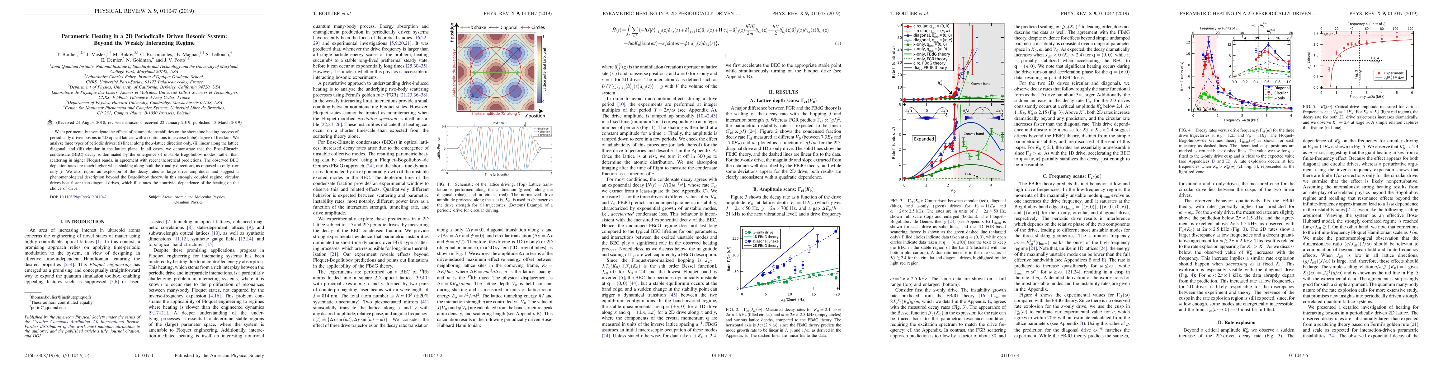 This study experimentally examines the parametric instabilities in a 2D bosonic system driven by different periodic drives, revealing that BEC decay is driven by unstable Bogoliubov modes rather than scattering. The heating rates significantly increase when both x and y directions are driven, highlighting interaction-induced non-separability.