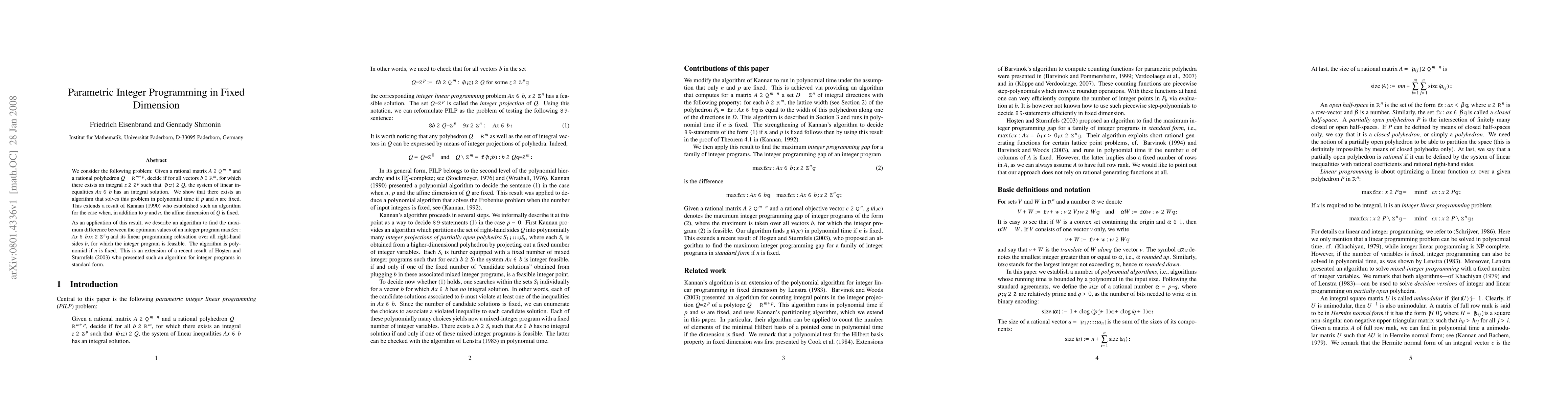This paper addresses a parametric integer programming problem in a fixed dimension, demonstrating a polynomial-time algorithm for solving it when certain parameters are fixed. It extends previous work by relaxing the constraints on the affine dimension, and provides an application to finding maximum differences between integer and linear programming optimum values for fixed dimensions.