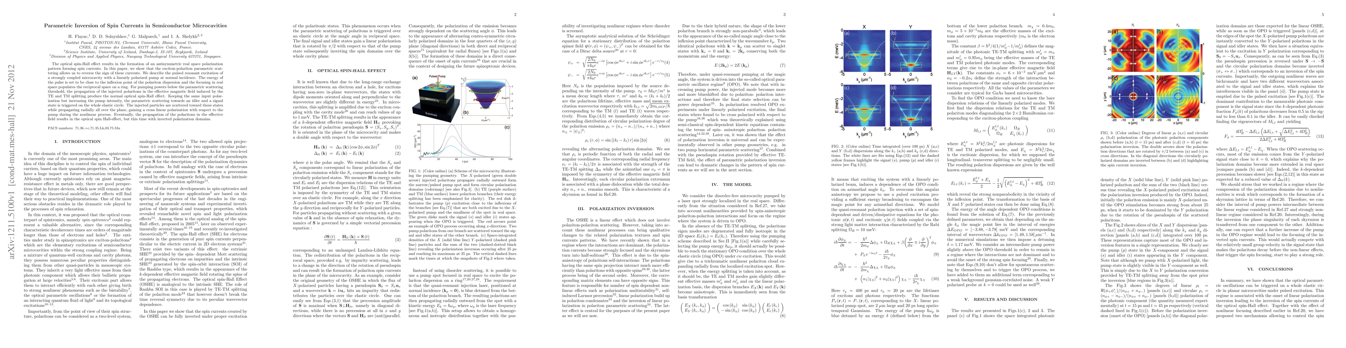 The optical spin-Hall effect results in the formation of an antisymmetric real space polarization pattern forming spin currents. In this paper, we show that the exciton-polariton parametric scattering allows us to reverse the sign of these currents. We describe the pulsed resonant excitation of a strongly coupled microcavity with a linearly polarized pump at normal incidence. The energy of the pulse is set to be close to the inflexion point of the polariton dispersion and the focusing in real space populates the reciprocal space on a ring. For pumping powers below the parametric scattering threshold, the propagation of the injected polaritons in the effective magnetic field induced by the TE and TM splitting produce the normal optical spin-Hall effect. Keeping the same input polarization but increasing the pump intensity, the parametric scattering towards an idler and a signal state is triggered on the whole elastic circle. The injected particles are scattered toward these states while propagating radially all over the plane, gaining a cross linear polarisation with respect to the pump during the nonlinear process. Eventually, the propagation of the polaritons in the effective field results in the optical spin Hall-effect, but this time with inverted polarization domains.